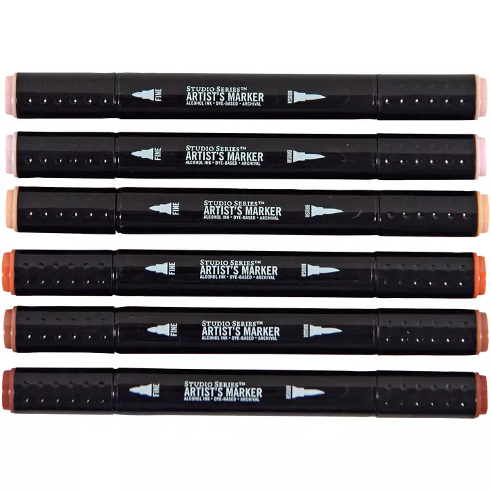 Consigue un sombreado sutil del tono de la piel y efectos dramáticos con este juego de rotuladores de alcohol de doble punta de amplia gama.