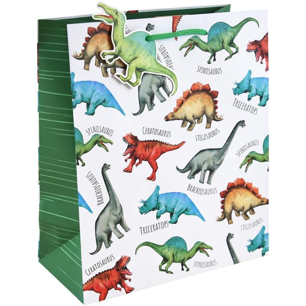 Haz que cada regalo sea una aventura prehistórica con la Bolsa Regalo Grande Dinosaurios. Su tamaño espacioso permite envolver obsequios voluminosos con facilidad, mientras que su diseño colorido y divertido encantará a niños y amantes de los dinosaurios.