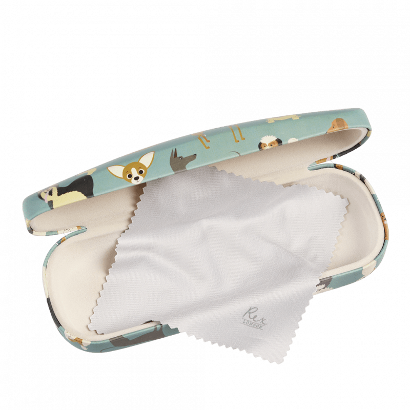 ¡Un regalo brillante para un amante de los perros! Nuestro estuche rígido Best in Show viene con un paño de microfibra para mantener los anteojos limpios.