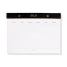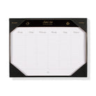 Planificador semanal sin fecha con papel texturizado perforado. El encabezado envuelto en terciopelo presenta un diseño dorado metálico y detalles metálicos. Presentado en una caja de regalo decorativa con ventana.