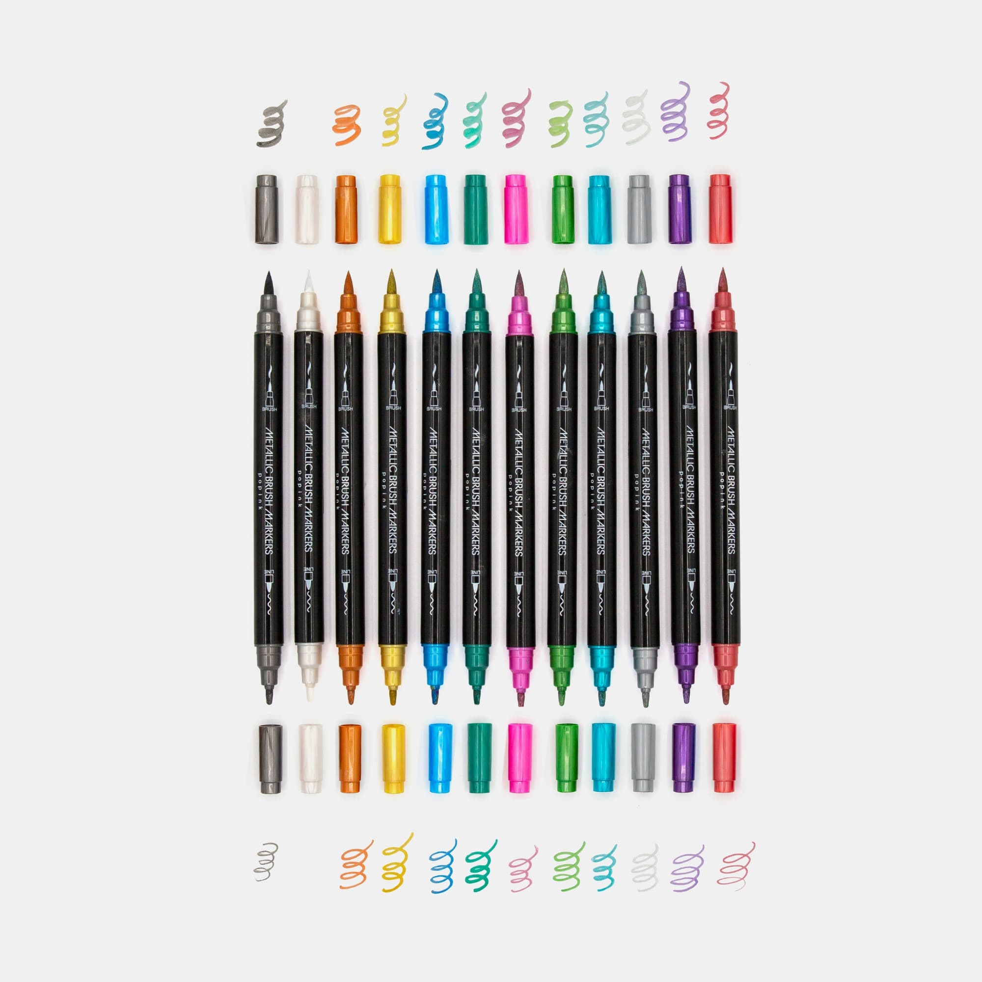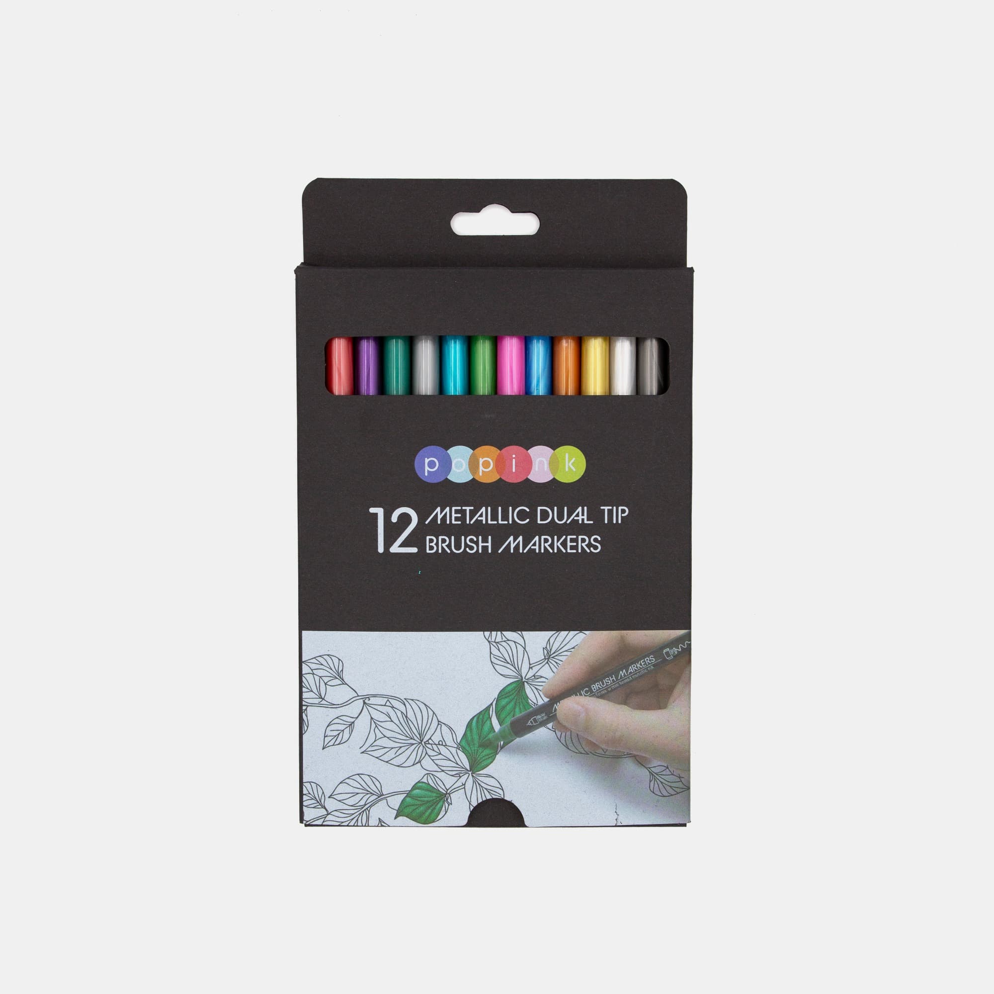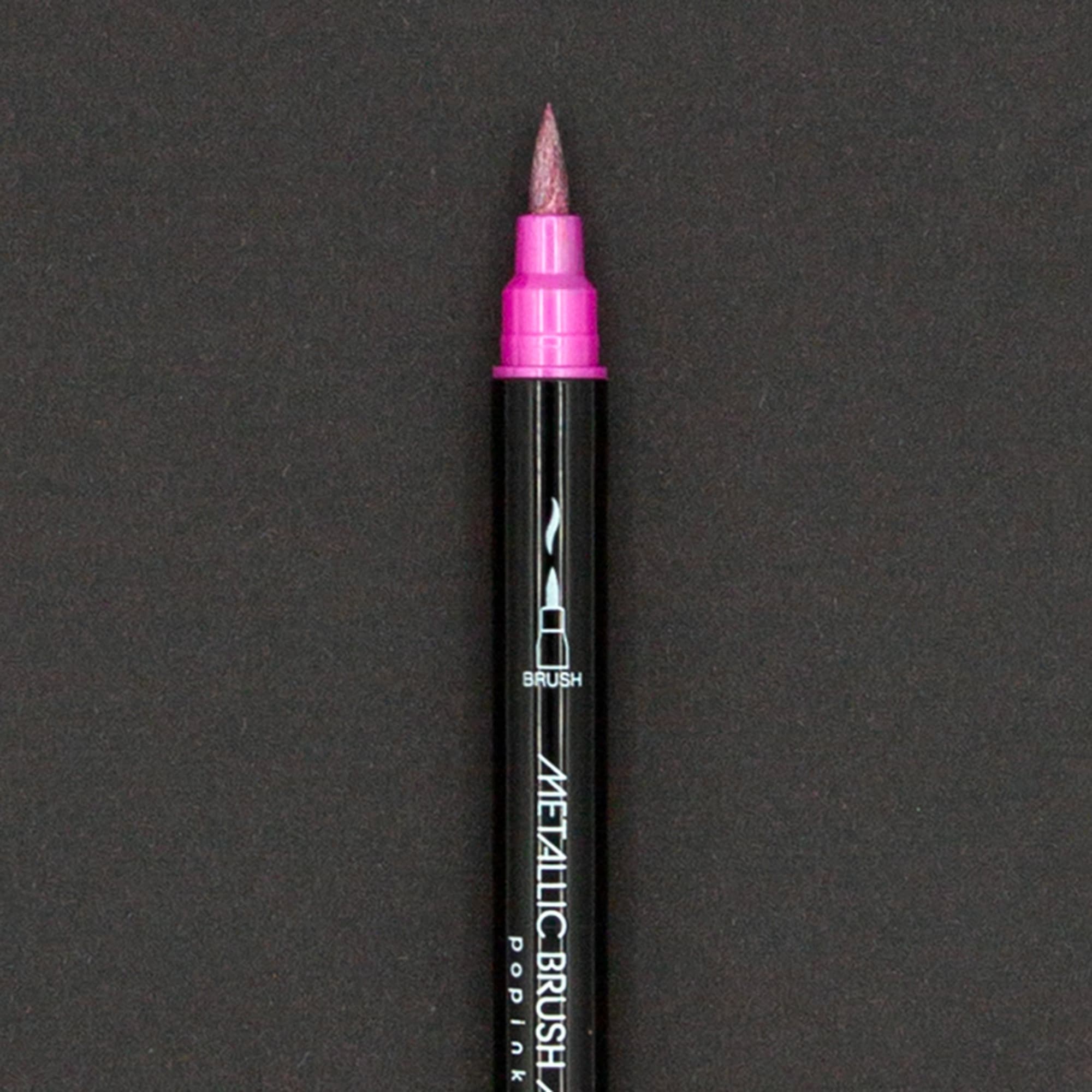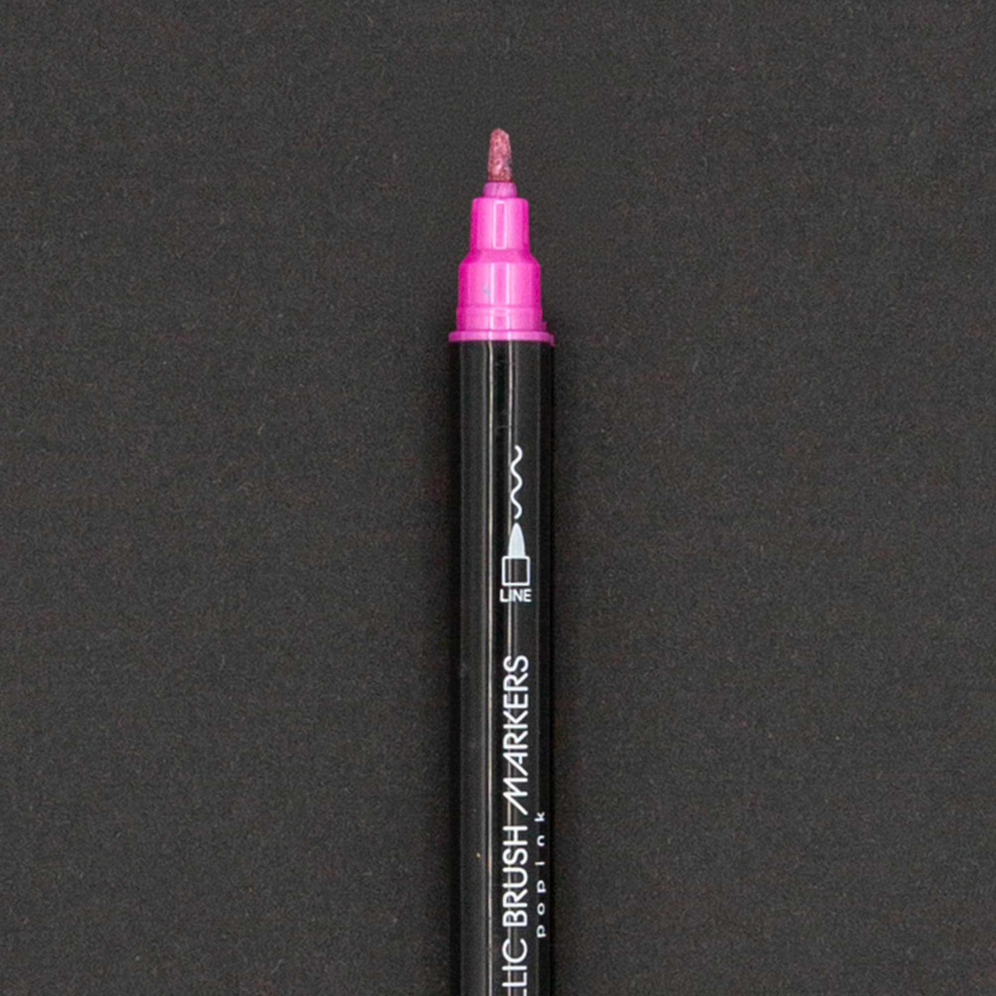 Llena tus ideas de brillo y personalidad con el set de 12 Metallic Brush Markers POPINK. Diseñados para destacar, estos marcadores combinan colores intensos con tinta metálica base agua que crea un efecto luminoso sobre la mayoría de las superficies. Gracias a su doble punta —brush para trazos expresivos y fina para detalles precisos— puedes dar vida a lettering, ilustraciones, tarjetas y proyectos creativos con total versatilidad. Son fáciles de usar y, en superficies no porosas, la tinta es fácil de limpiar. Con POPINK, cada trazo brilla y cada idea cobra vida.