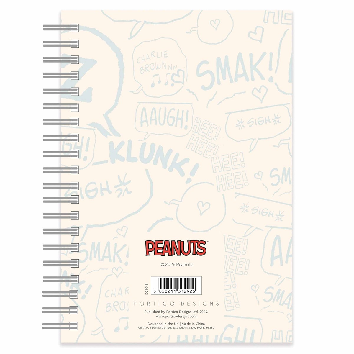 Organiza tu año con estilo junto a los personajes más queridos de Snoopy. Esta agenda tamaño A5 para 2026 combina funcionalidad y nostalgia con su clásico diseño semanal y vibrantes ilustraciones de la icónica tira cómica de Charles M. Schulz. Su encuadernación de espiral resistente y páginas de calidad garantizan durabilidad, mientras que el amplio espacio dedicado a tareas y notas te permite planificar cada detalle sin límites.