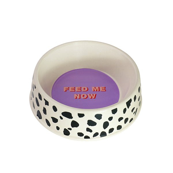 Dale un toque de diseño único a la hora de comer de tu mascota con esta llamativa plato de bambú. Con un moderno patrón tipo dálmata en blanco y negro, este plato no es solo funcional, sino que también es un elemento decorativo que encaja perfecto en cualquier hogar con estilo. En el interior, incluye el mensaje divertido y enérgico: "FEED ME NOW". Combina sostenibilidad, diseño audaz y ese humor que te encanta.