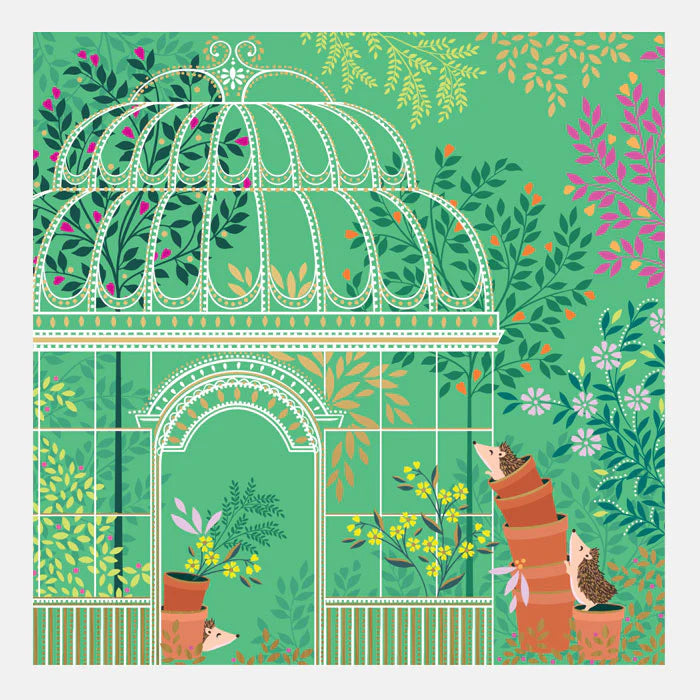 Esta tarjeta en blanco muestra encantadores erizos jugando en un jardín lleno de flores, ideal para cualquier ocasión. Decorada con detalles en foil dorado que aportan un toque de sofisticación, es la forma perfecta de enviar tus felicitaciones con cariño gracias a Sara Miller London.
