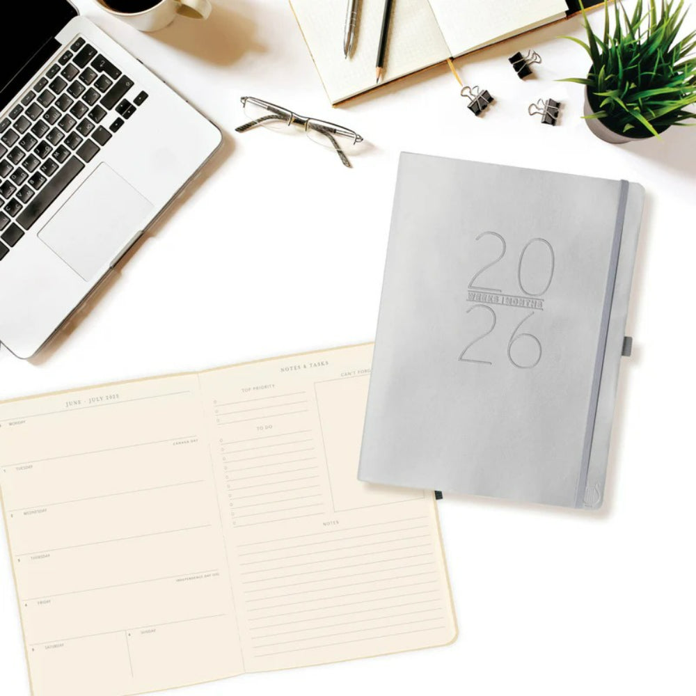 Agenda 2026 Apollo Plateado A4 18 Meses