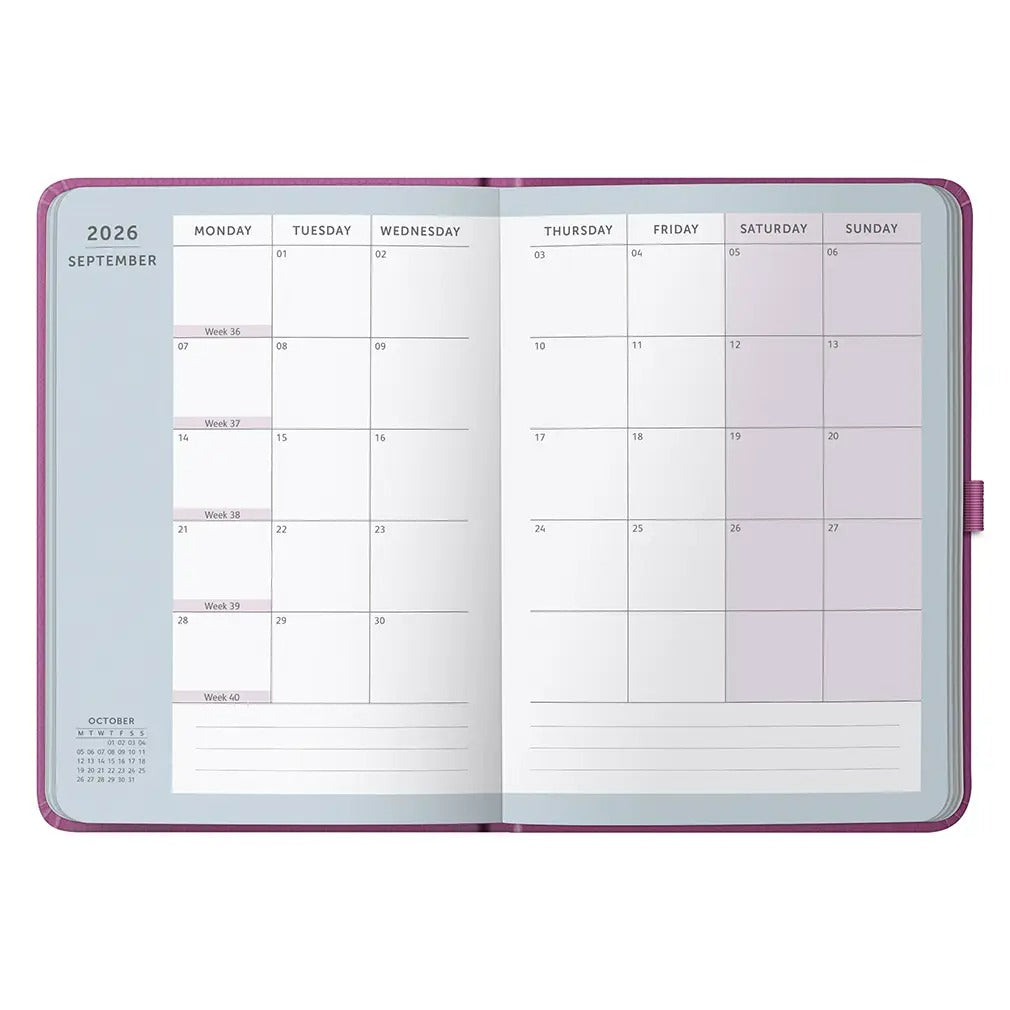 Organiza tu año con estilo. Esta agenda 2026 en rosado te acompañará durante los 12 meses, ofreciendo espacio suficiente para anotar tus compromisos, metas y momentos importantes.