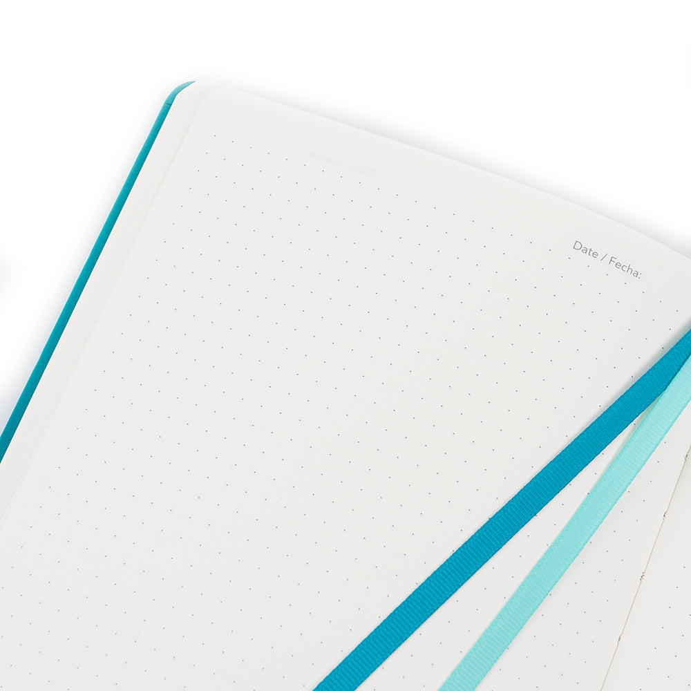 La libreta A5 mediana puntada en color azul claro es el accesorio perfecto para complementar tu día a día. Sus páginas punteadas permiten una mayor versatilidad en la escritura y diseño, mientras que su tamaño A5 es ideal para llevarla contigo a todas partes.