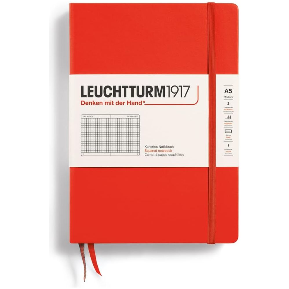 El formato de libreta Medium (A5) es el clásico de la gama Leuchtturm: 251 páginas numeradas con espacio para escribir, dibujar, anotar, ordenar los pensamientos y estructurarlos, es decir, para pensar a mano.