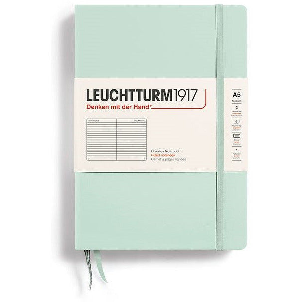 El modelo clásico de Leuchtturm es sin duda la libreta de tamaño mediano (A5). Cuenta con 251 páginas numeradas y el espacio suficiente para escribir, dibujar, anotar, ordenar los pensamientos y estructurarlos. Elige el color, entre las más de 15 opciones disponibles, y el tipo de pautado (cuadriculado, punteado, liso o de líneas) que más te guste. ¡Elegancia y calidad en una libreta!