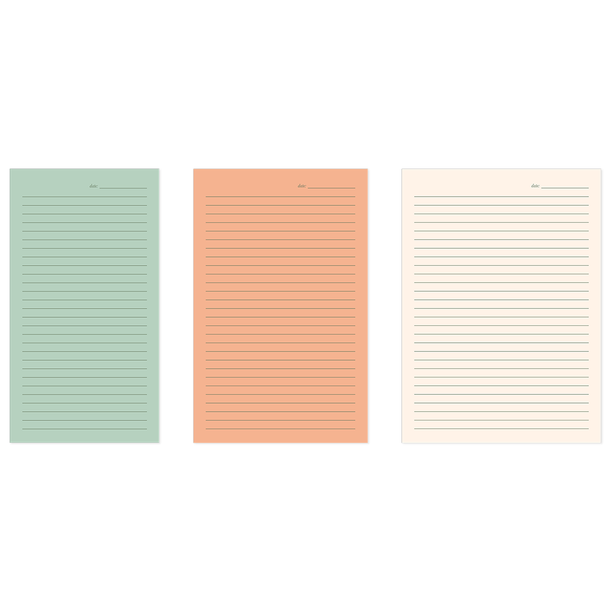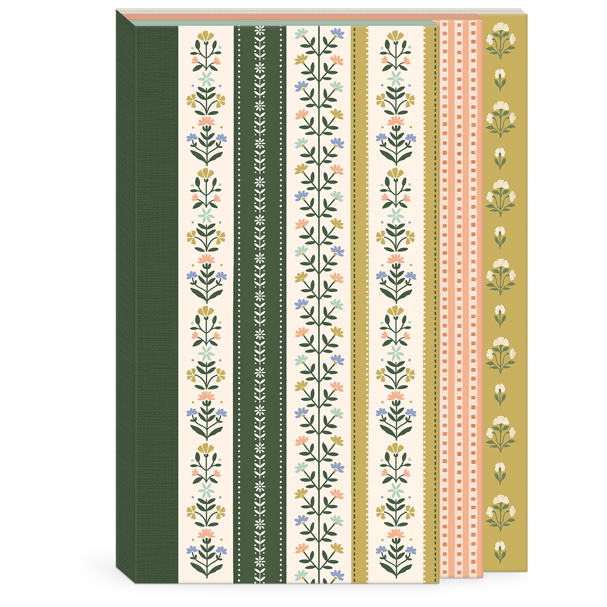 Pensamientos aleatorios, grandes planes, historias de viajes, esperanzas y sueños. Anota o registra tus inspiraciones en esta preciosa libreta de tres niveles de anchos variados.