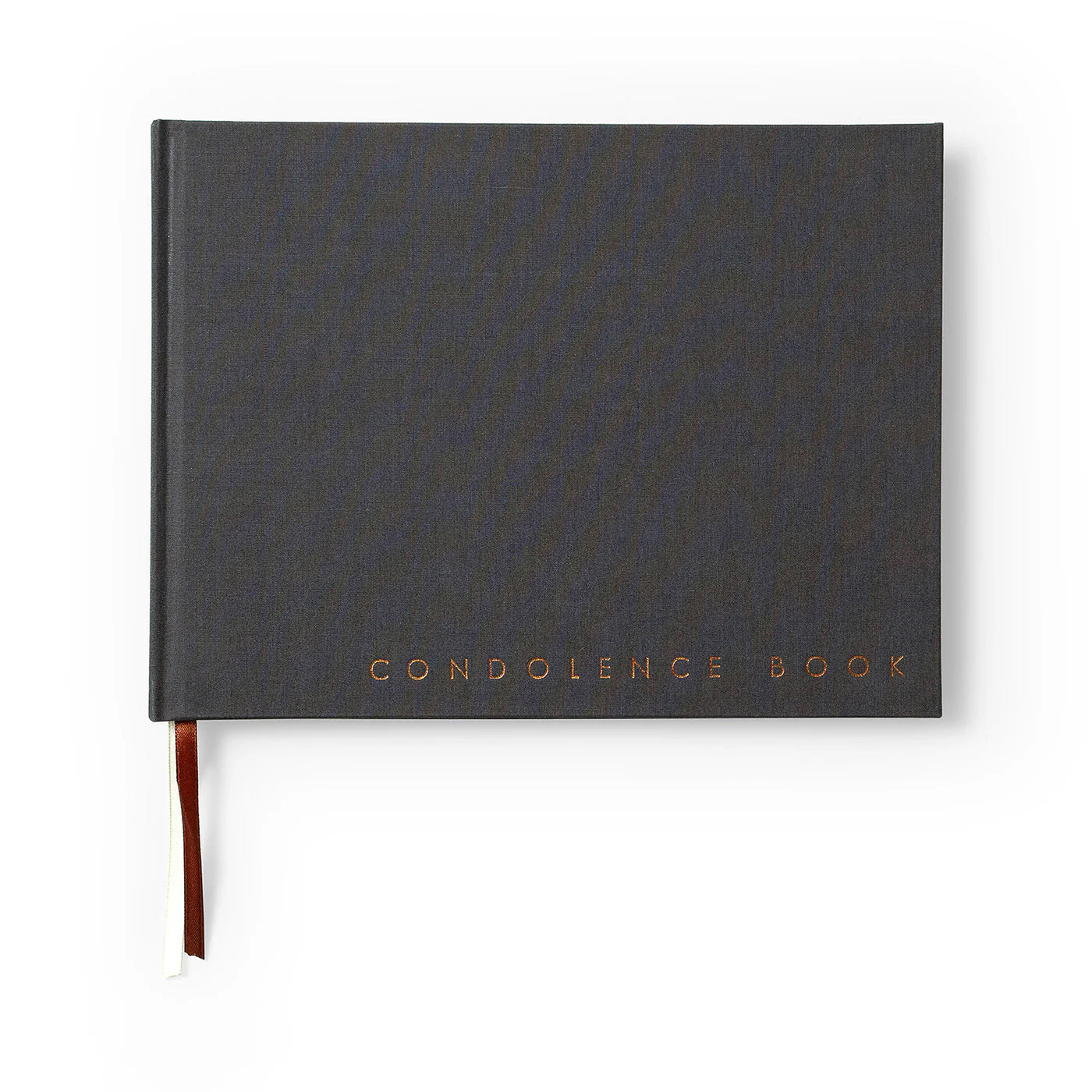 Permite que tus invitados expresen sus condolencias con este elegante libro. De diseño minimalista, incluye dos cintas separadoras y la portada lleva la inscripción “Condolence Book”.