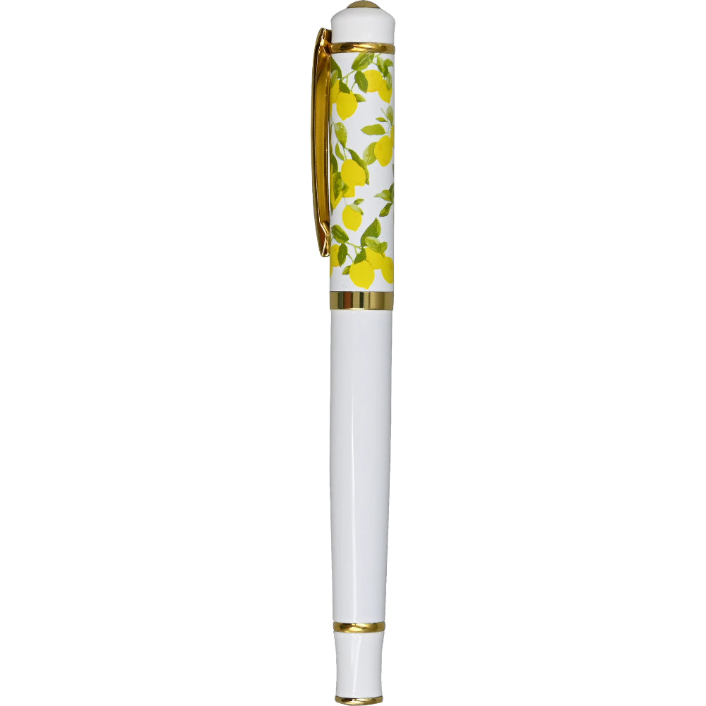Esta sofisticada pluma estilográfica ofrece un trazo fino y preciso que fluye suavemente, haciendo que escribir sea un verdadero deleite. Su diseño está inspirado en los vibrantes limones de la costa Amalfitana, con detalles dorados y un clip elegante que realzan su estilo. Viene presentada en una caja de regalo decorada con papel dorado, ideal para sorprender a cualquier amante de la escritura con un toque de distinción.
