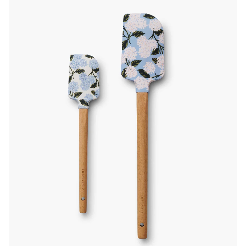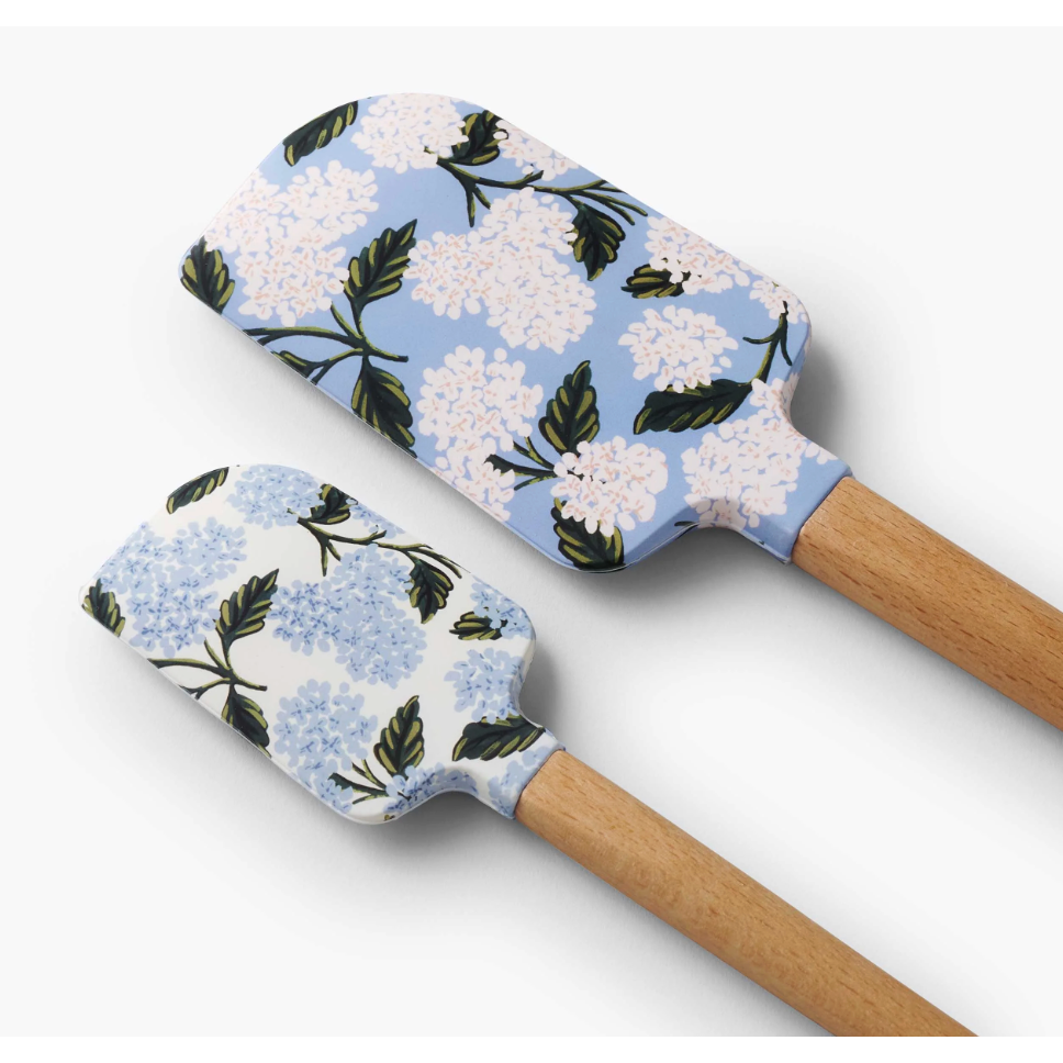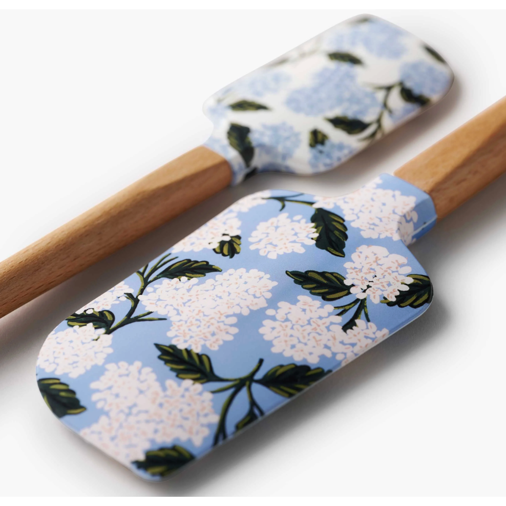 Este juego de dos espátulas de silicona, con flores de hortensia ilustradas en contraste, es perfecto para preparar delicias.