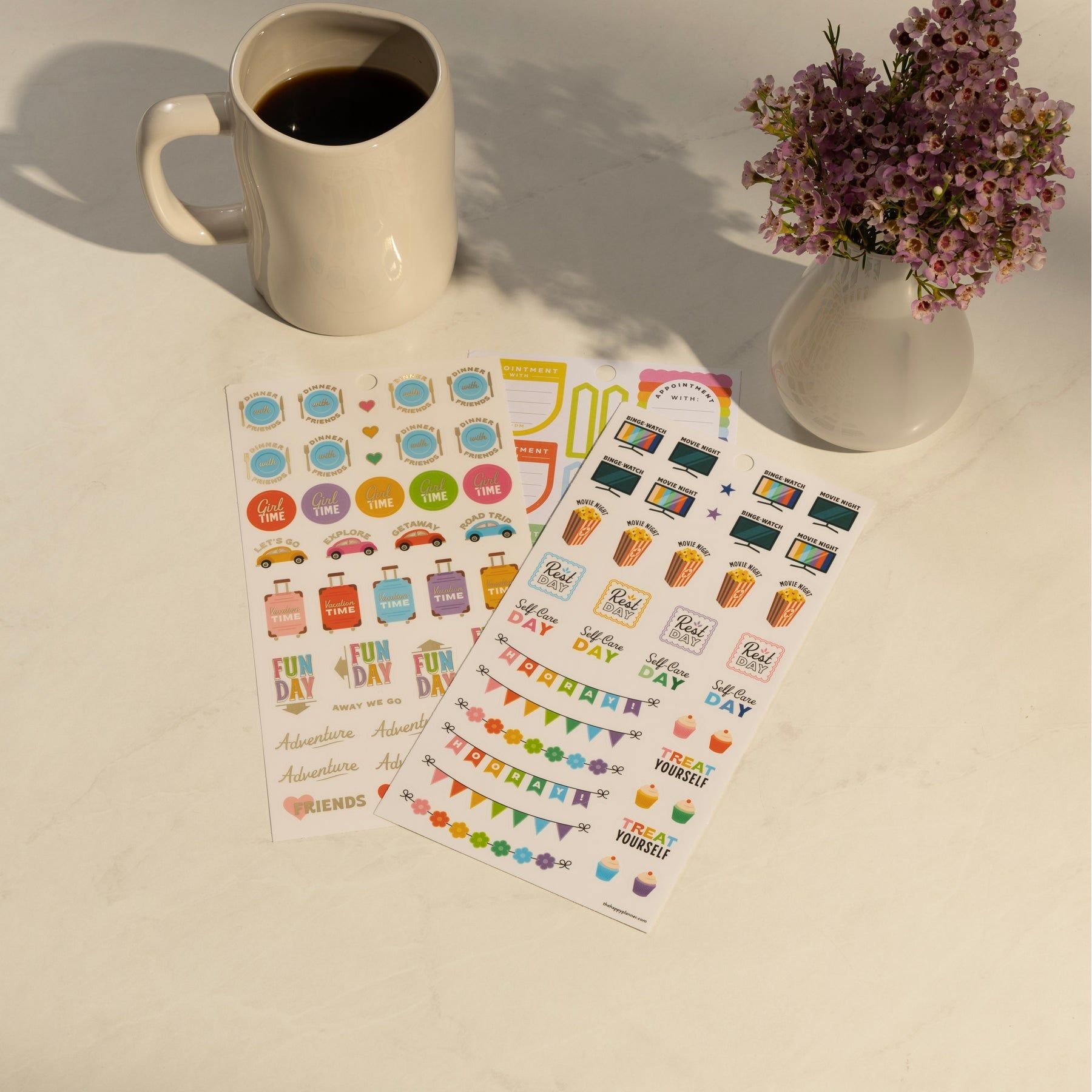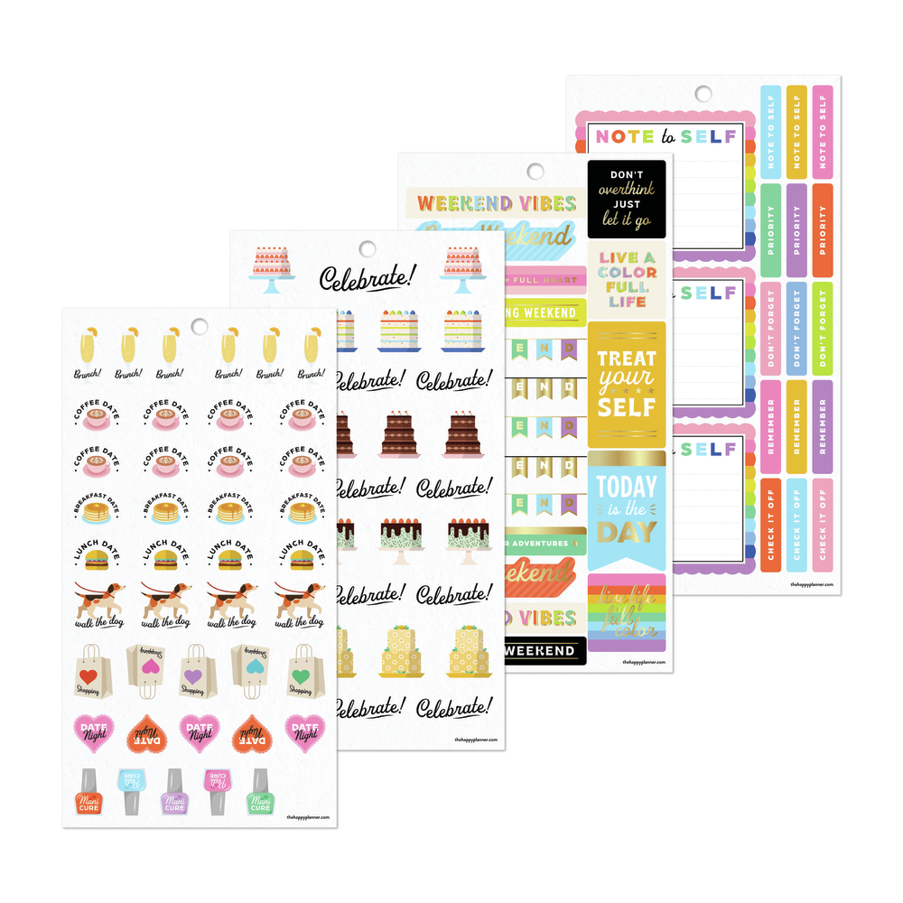 ¡Haz que cada día sea más divertido con estos stickers de planes diarios! Con este set, podrás personalizar tu agenda o planner de manera original y creativa. Organízate y diviértete al mismo tiempo con estos coloridos stickers.