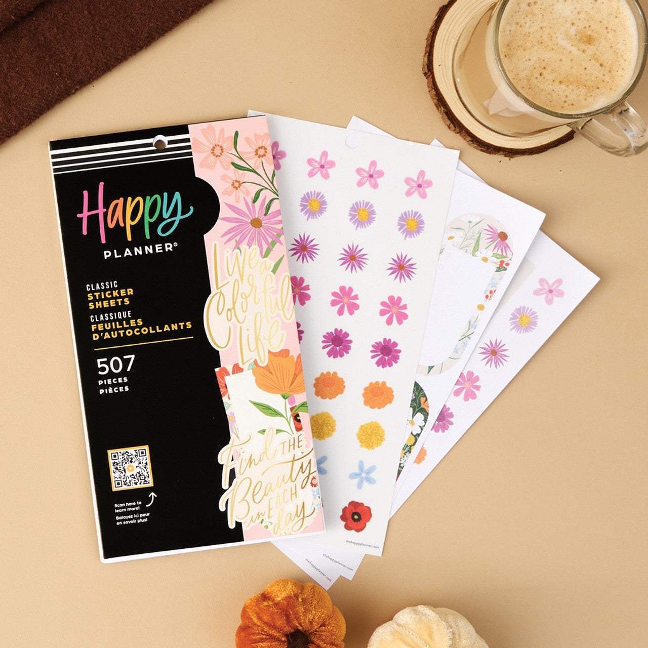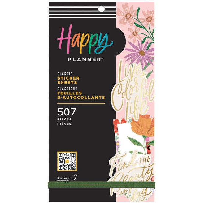 - Libro de 30 hojas con 507 stickers con temática floral.