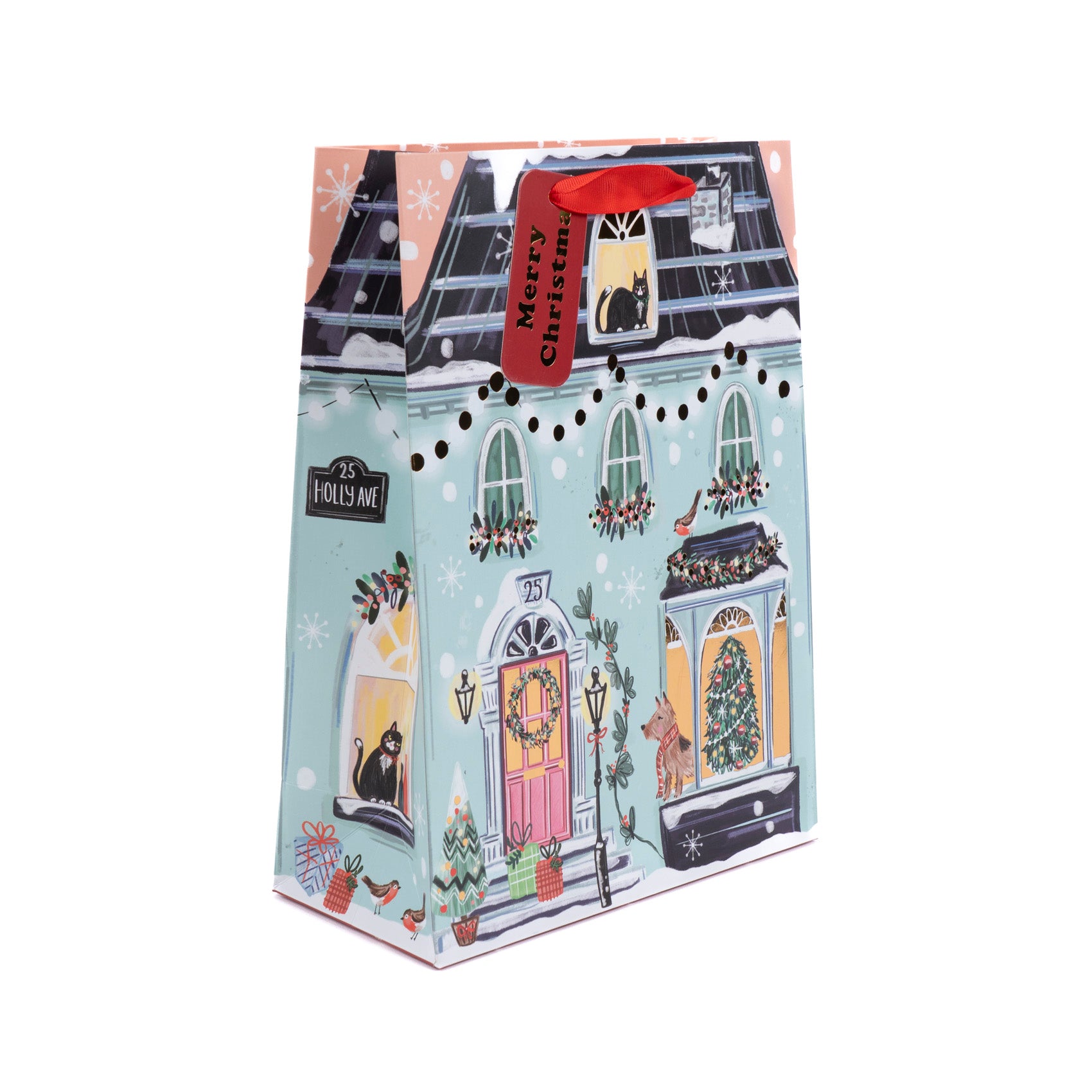La Bolsa Regalo Mediana Navidad Casa es el complemento perfecto para tus obsequios navideños, combinando estilo y funcionalidad. Su tamaño ideal permite envolver regalos con facilidad, mientras que su diseño festivo aporta un toque acogedor y elegante a la presentación.