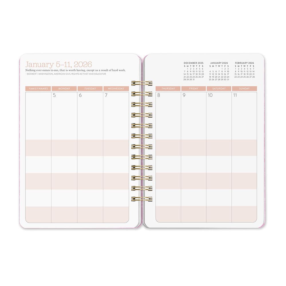 La Agenda Semanal de 17 Meses Bella Flora 2026 de Orange Circle Studio es tu compañero ideal para mantenerte organizad@ e inspirad@ durante todo el año. Con su vibrante arte floral, este planner no solo es una herramienta funcional de organización, sino también un encantador toque artístico para tus actividades diarias.