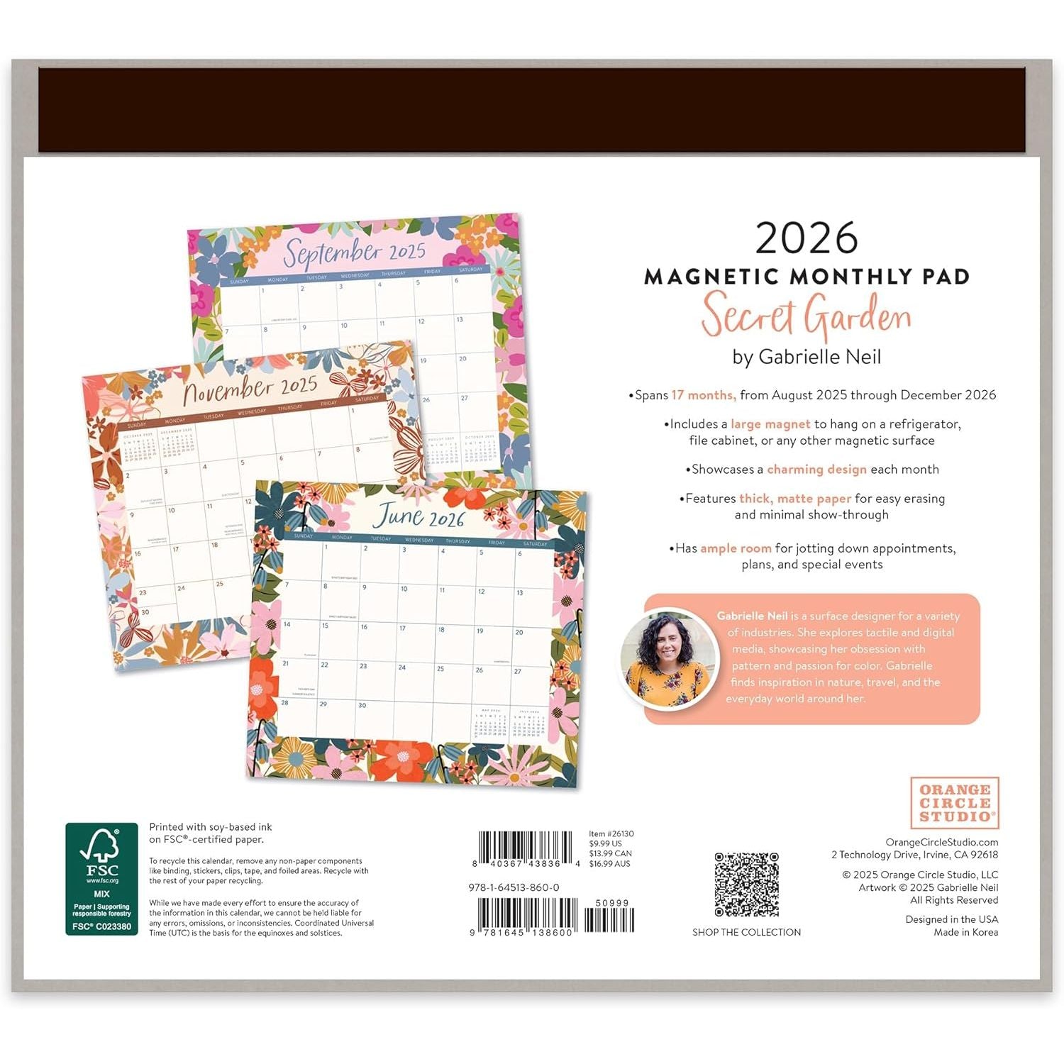 Organiza tu año 2026 con estilo y practicidad gracias al Calendario Magnético Secret Garden. Su diseño delicado inspirado en jardines secretos aporta un toque de belleza a cualquier espacio, mientras su formato magnético permite colocarlo fácilmente en superficies metálicas para tener siempre a la mano tus planes y recordatorios. Planea tus actividades de manera eficiente y disfruta de un ambiente armonioso en tu lugar de trabajo o en casa.
