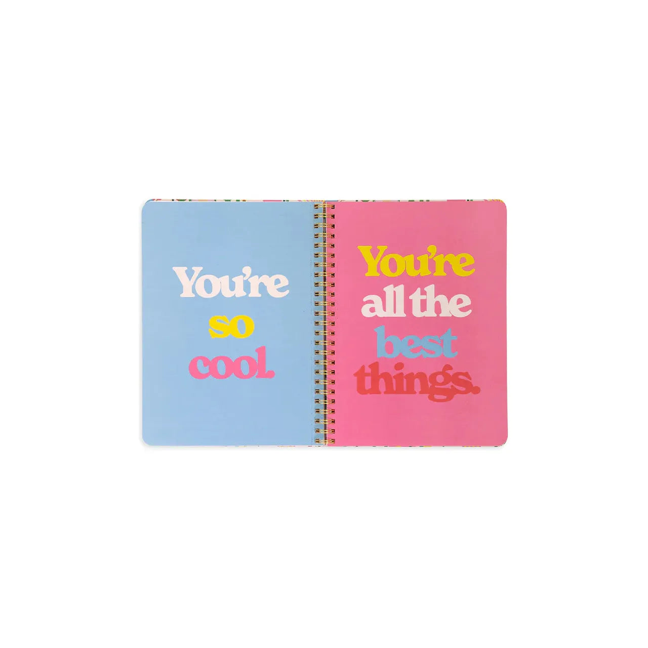 Eres muy inteligente. A las personas inteligentes les encantan los cuadernos y este, bueno, es uno para amar. Con espirales de colores y una página central que invita a la reflexión, nunca querrás estar sin su compañía. ¿Y por qué deberías hacerlo tú? Necesitarás un lugar para anotar todas esas ideas brillantes.