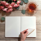 Combina personalidad y durabilidad con esta hermosa libreta encuadernada en copto. Este tipo de encuadernación permite que la libreta se abra en 180 grados completos y quede plana facilitando la escritura, al tiempo que muestra los bordes pintados a juego. El tamaño mediano ofrece mucho espacio para escribir y hace que sea ideal para llevar en un bolso o mochila.