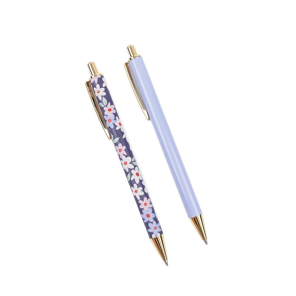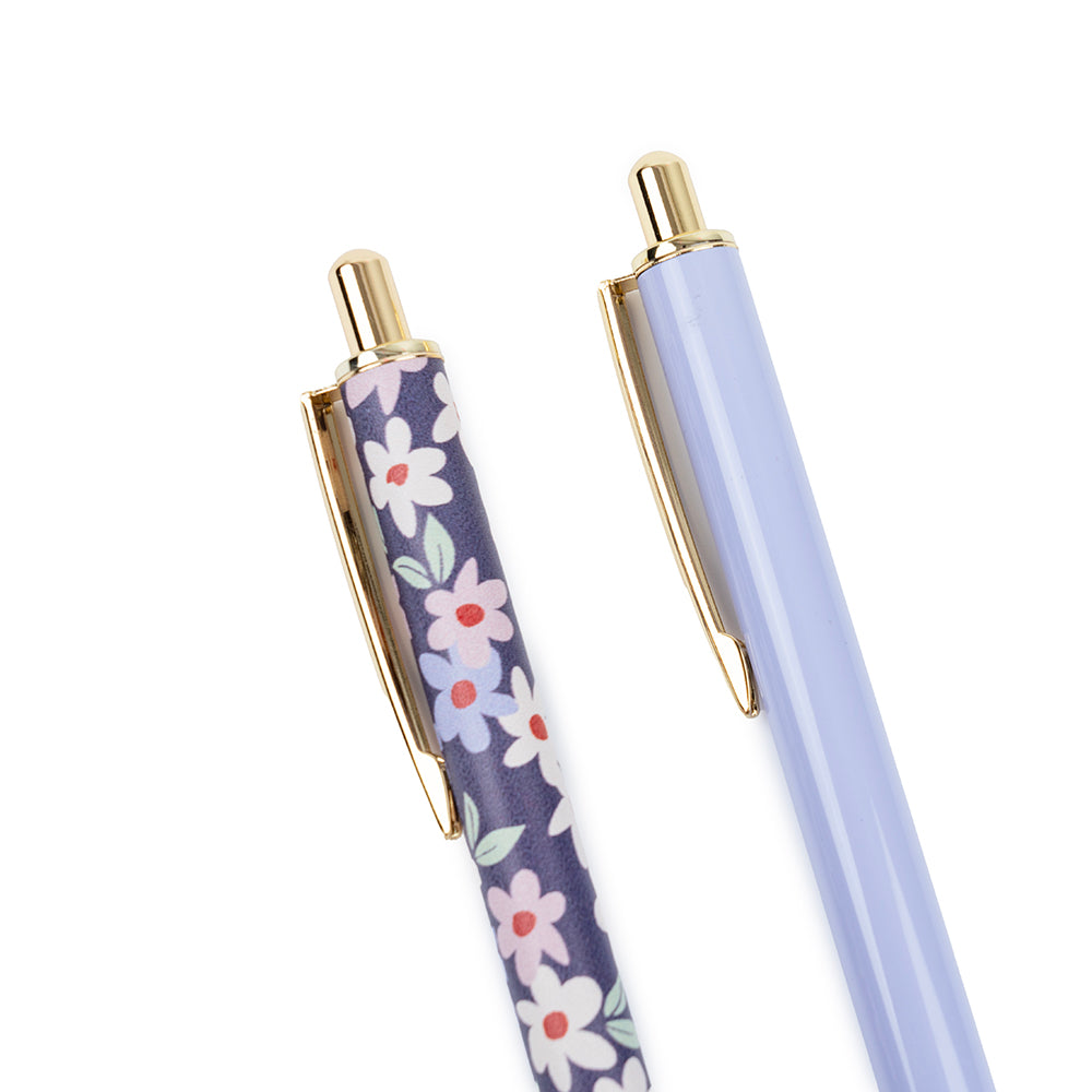 Set 2 Bolígrafos Floral Azul