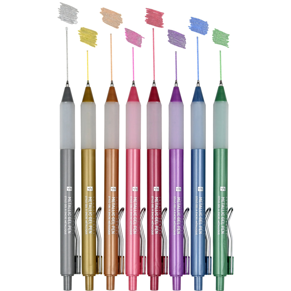 ¡Los bolígrafos de gel de punta fina de secado rápido con llamativos colores metálicos proporcionan un flujo de tinta uniforme para una experiencia de escritura impecable!