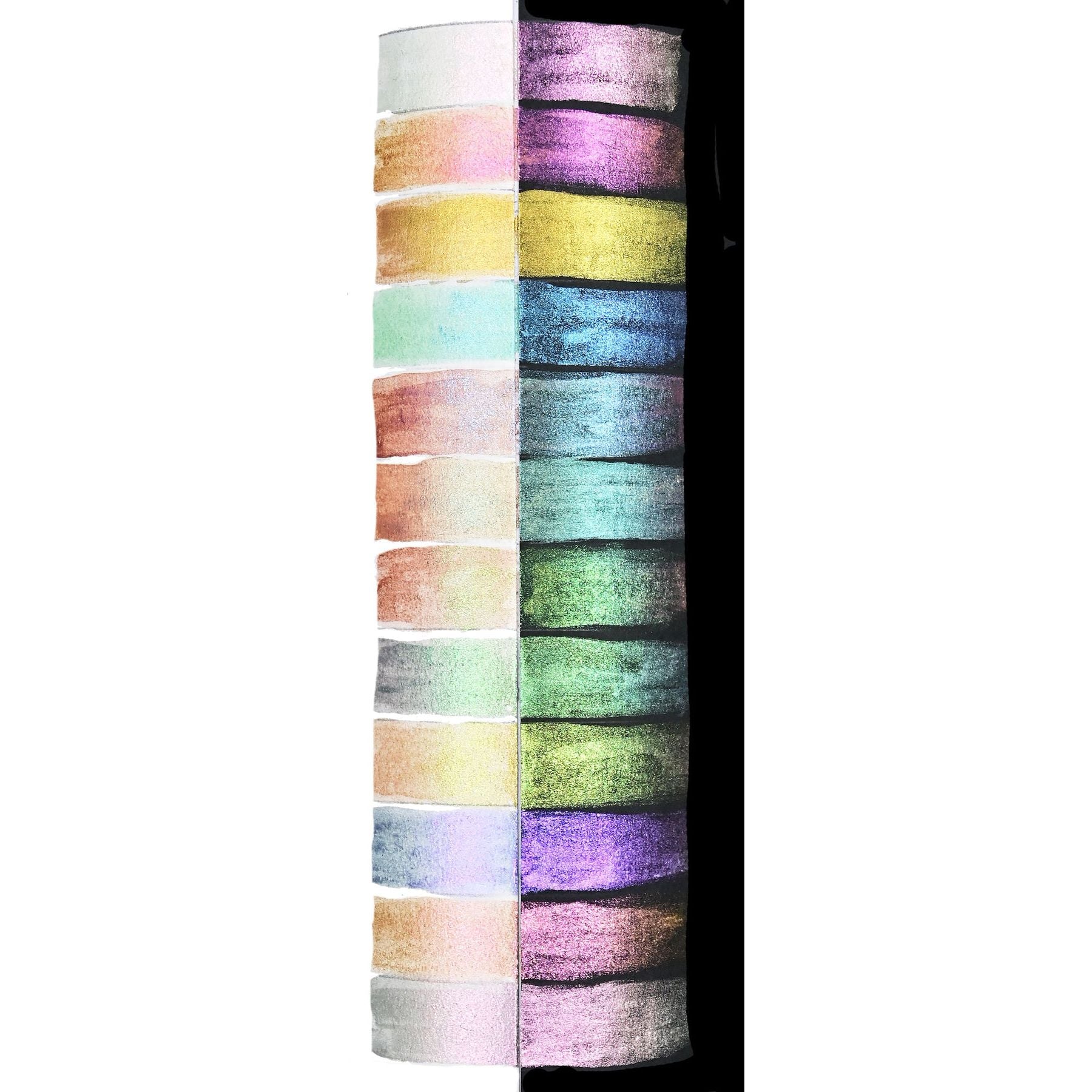 - Este set único contiene 12 pastillas secas de acuarela iridiscente.