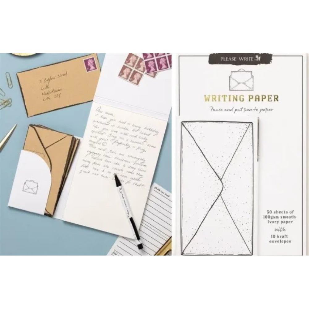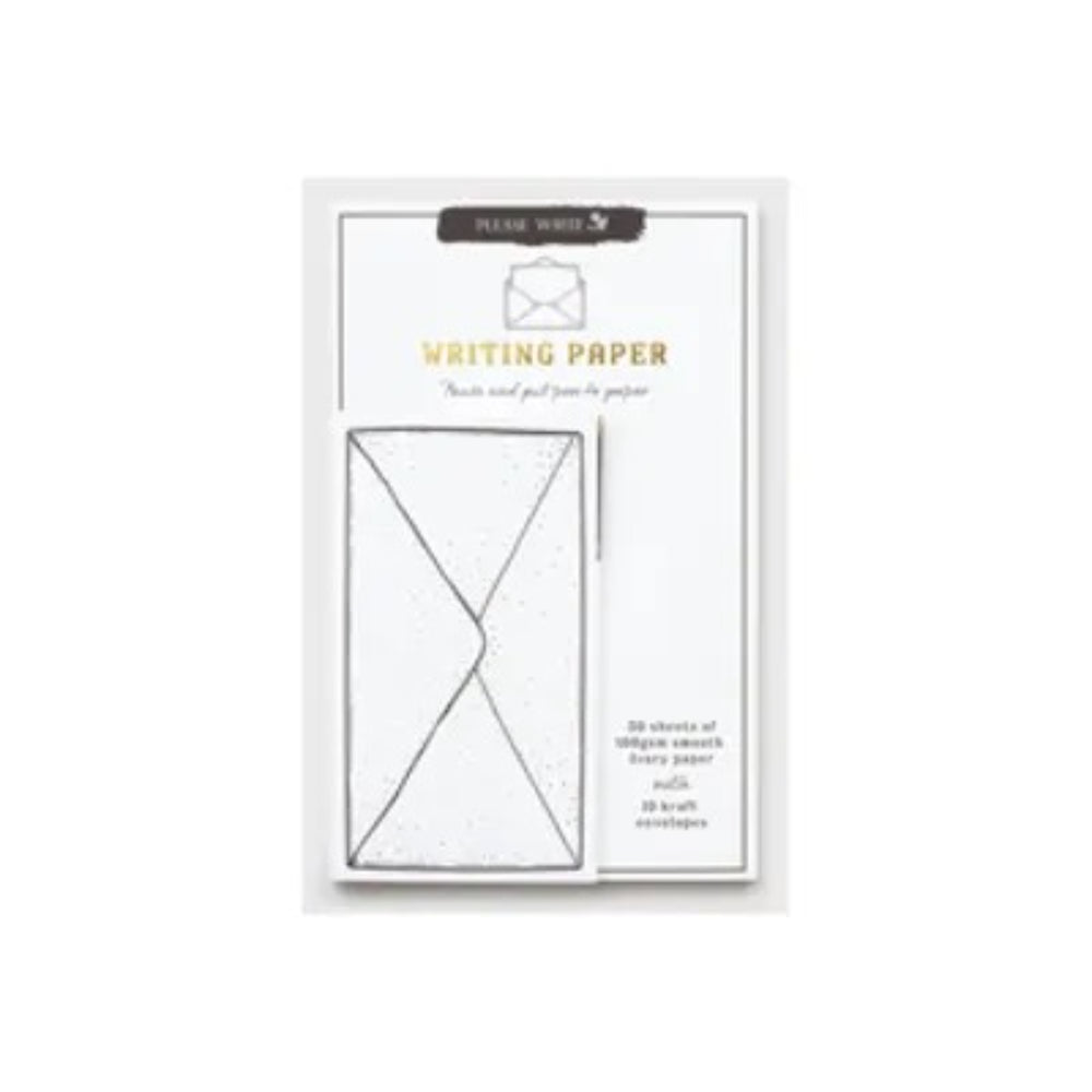 Este elegante set de escritura incluye 10 sobres y 30 hojas de papel de calidad Please Write, perfecto para mantener viva la tradición de la correspondencia escrita a mano. Ideal para cartas personales, notas de agradecimiento o invitaciones especiales que merecen un toque más cálido y personal que un simple mensaje digital.