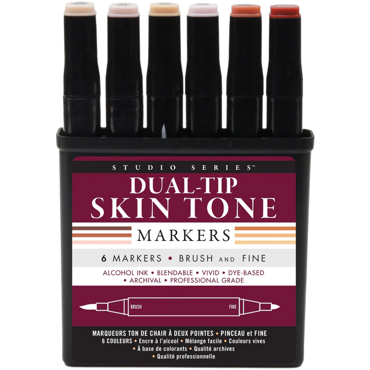Consigue un sombreado sutil del tono de la piel y efectos dramáticos con este juego de rotuladores de alcohol de doble punta de amplia gama.