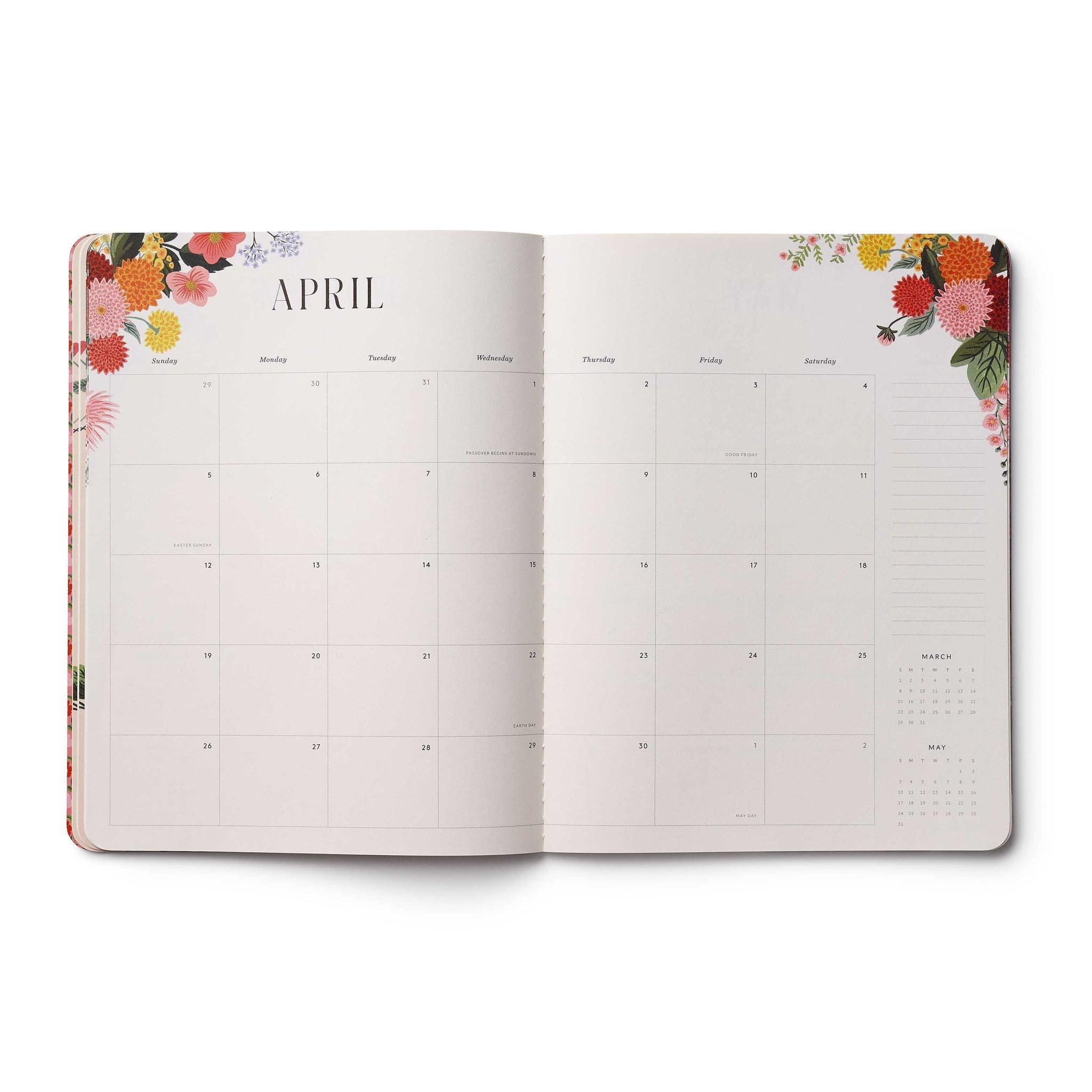 Organiza todo el año con la agenda anual 2026 de Rifle Paper Co., que abarca de enero a diciembre de 2026. Su formato de mes vista permite una planificación mensual clara y sencilla, con secciones dedicadas para fechas importantes y contactos.