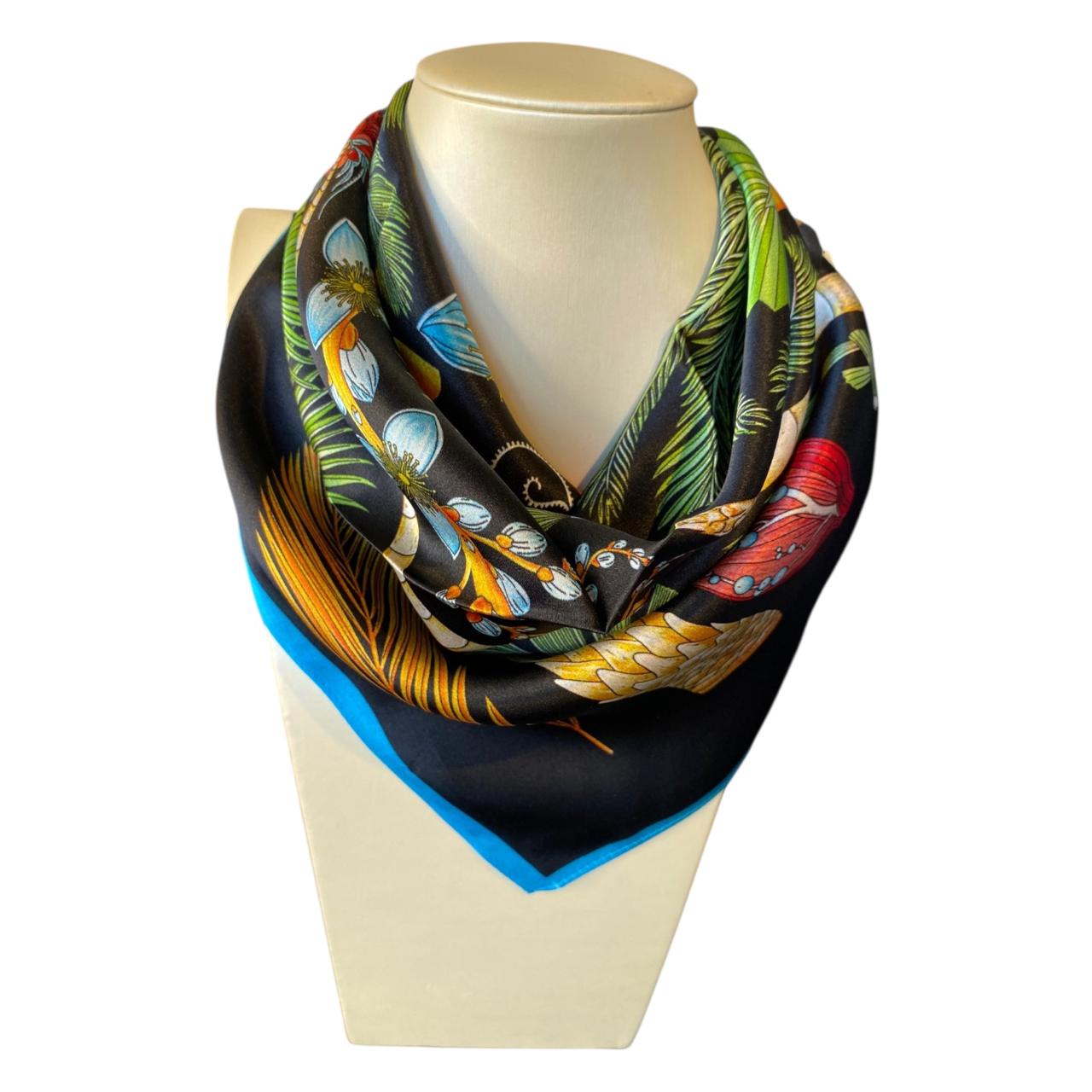 Sumérgete en el misterio de la selva bajo las estrellas. Este pañuelo cautiva con su diseño nocturno que evoca la magia de la naturaleza en su forma más enigmática. Los tonos profundos y detalles intrincados crean una pieza sofisticada que destaca tu personalidad aventurera. Perfecto para quienes buscan algo más allá de lo convencional, combina elegancia con un toque de misticismo. Su textura suave y resistente lo convierte en un accesorio versátil que eleva cualquier look, de día o de noche.