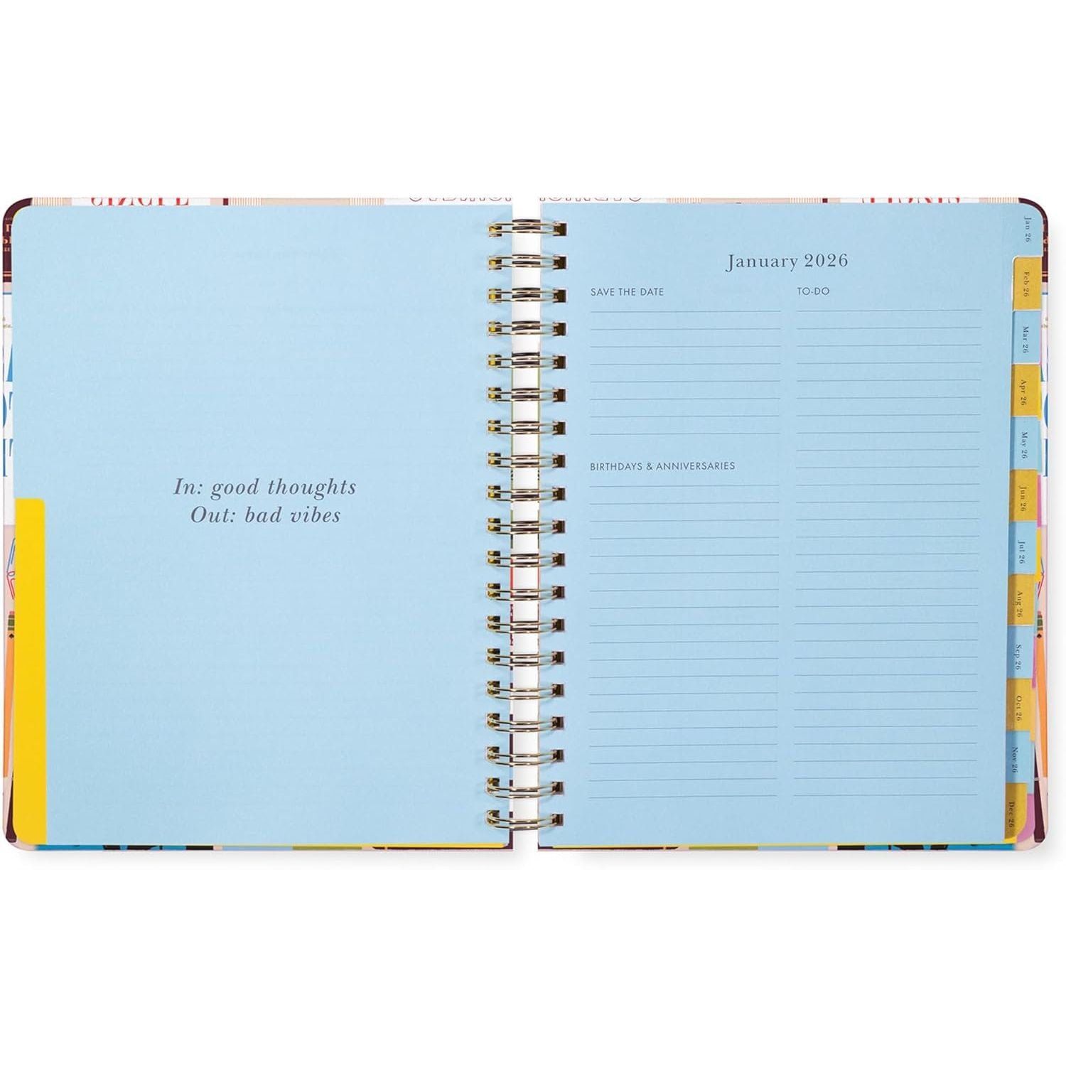 Organiza tu año con estilo y serenidad usando esta agenda exclusiva de Kate Spade New York. Su diseño inspirado en un creativo mix de las distintas agendas Kate Spade te acompañará en cada semana, permitiéndote registrar tus objetivos y momentos especiales con elegancia. Perfecta para quienes buscan equilibrio entre productividad y sofisticación en su rutina diaria.