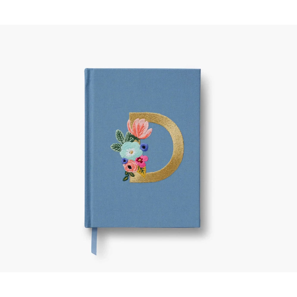 Una libreta bordada, solo para ti. Nuestra serie de diarios de tapa dura están envueltos en tela y bordados con tu inicial y un ramo de flores, acentuado con hilo metálico. En el interior encontrarás 240 páginas rayadas y una cinta para marcar tu lugar.