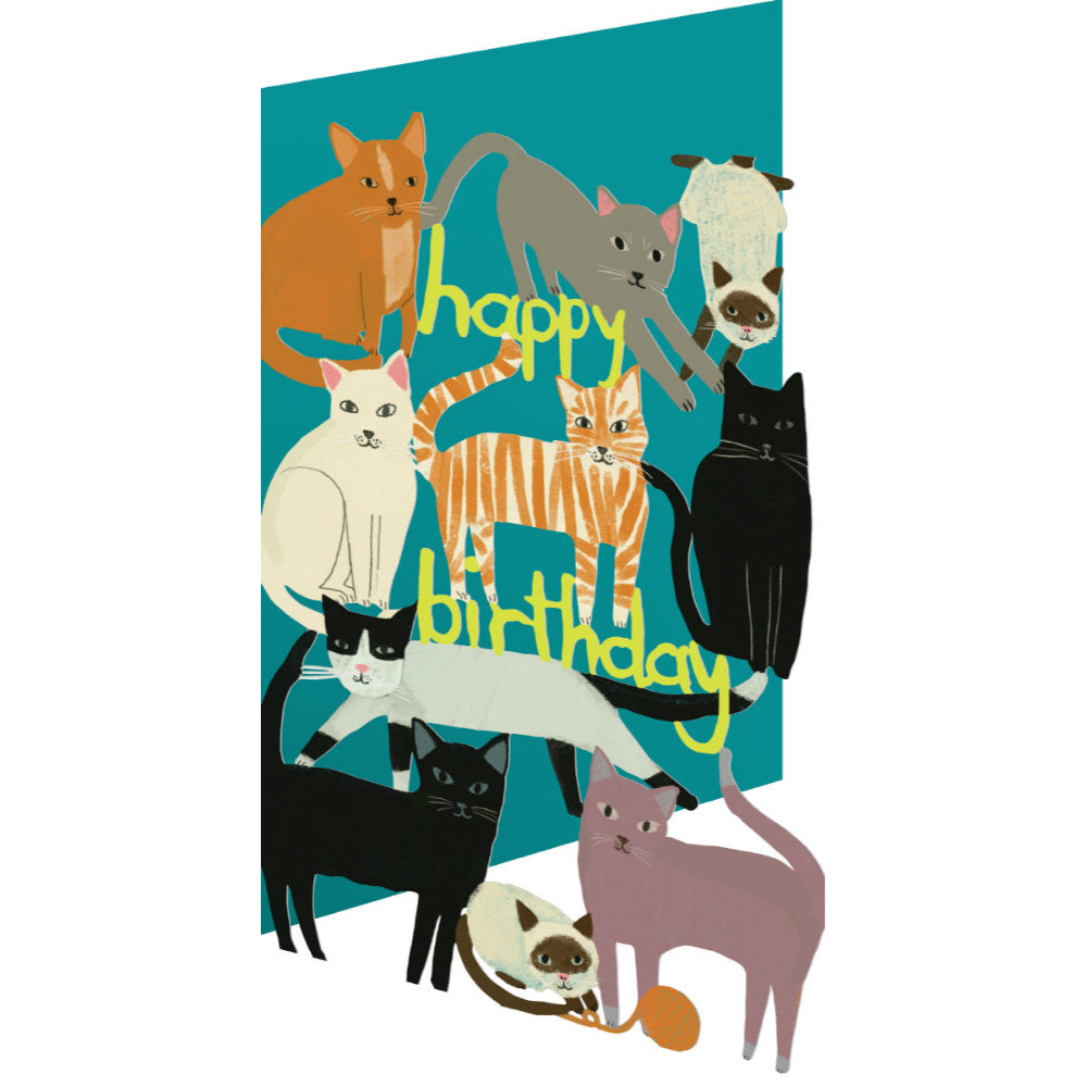 Celebra el cumpleaños de los amantes de los gatos con esta encantadora tarjeta ilustrada. Diseñada con adorables motivos felinos, es el complemento perfecto para cualquier regalo especial. Incluye sobre coordinado para una presentación impecable.