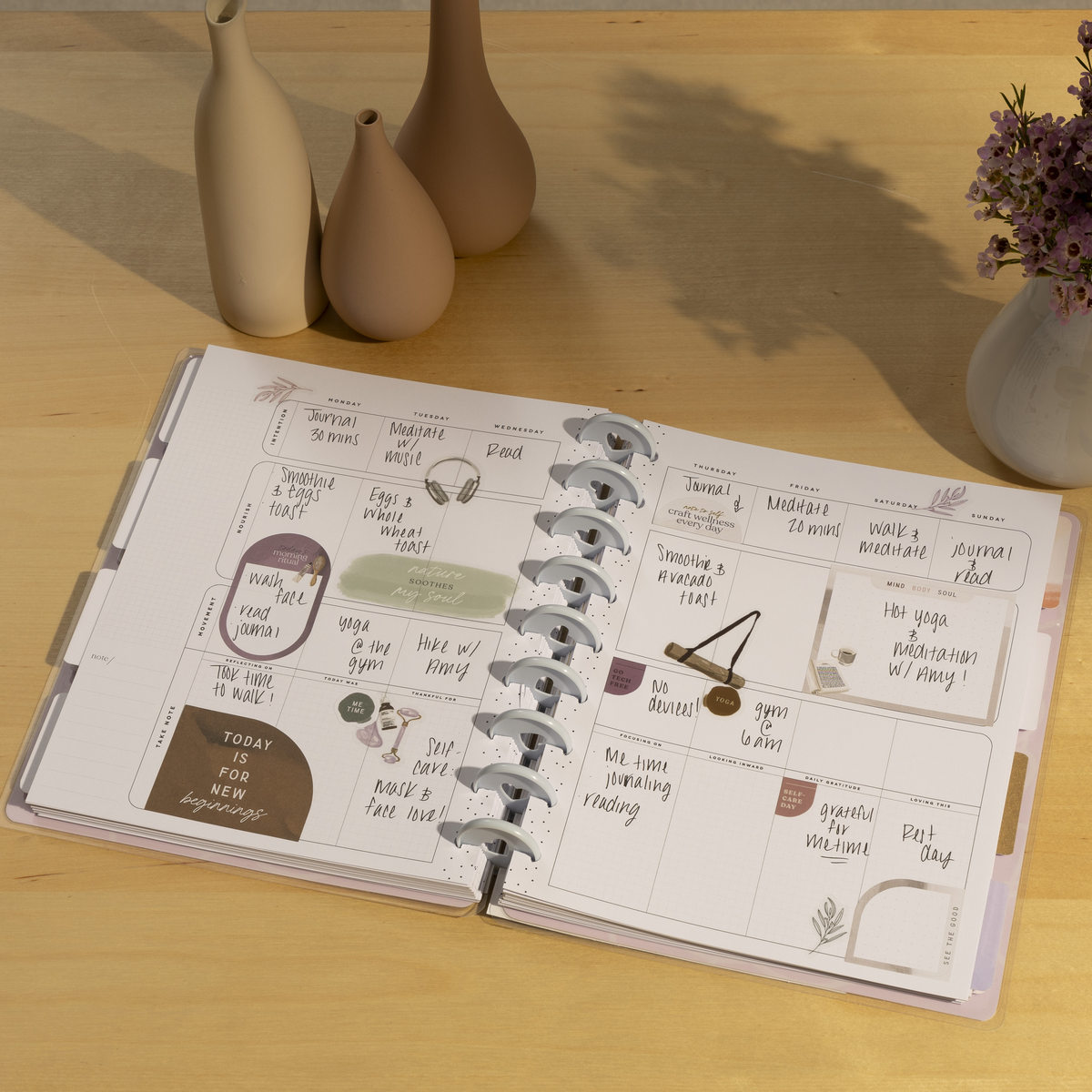 Descubre la marca más creativa y personalizable del mundo planner. Con su sistema disc-bound, puedes añadir, reorganizar o quitar páginas según tus necesidades. Disponible en varios tamaños (Mini, Classic, Big), con estilos para cada personalidad: mensual, diario, diario académico, bienestar, cocina y más. Complementa tu experiencia con stickers, washitapes y otros accesorios decorativos. Una forma alegre y práctica de "Planear tu felicidad"