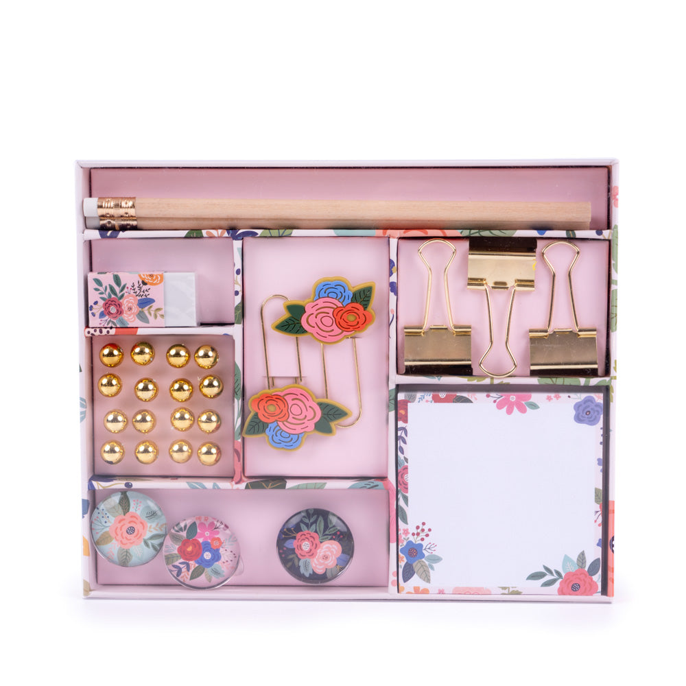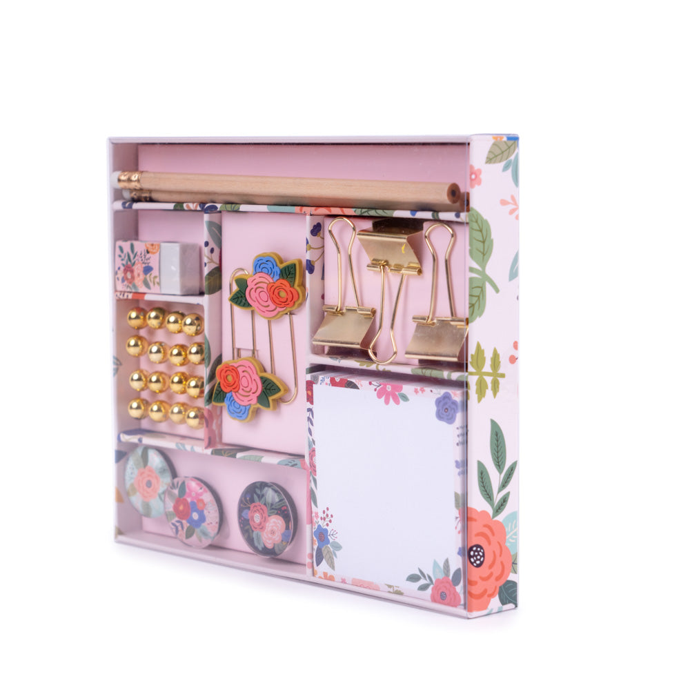 Transforma tu espacio de trabajo con el Set de Escritorio Floral, diseñado para aportar frescura y elegancia a tu rutina diaria. Este conjunto combina funcionalidad y estilo, ayudándote a mantener todo organizado mientras disfrutas de un ambiente inspirador.