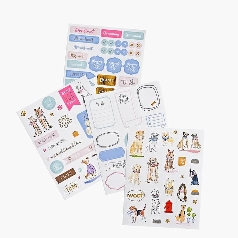 ¡Alégrale el día a ti o a tus amigos con estas increíbles pegatinas de perros! ¡Llena tu álbum de recortes o scrapbook con estos adorables stickers que incluyen lindos perritos, pancartas, recordatorios de veterinarios y más!