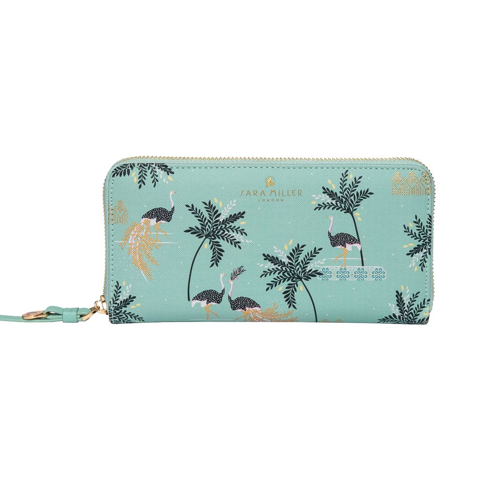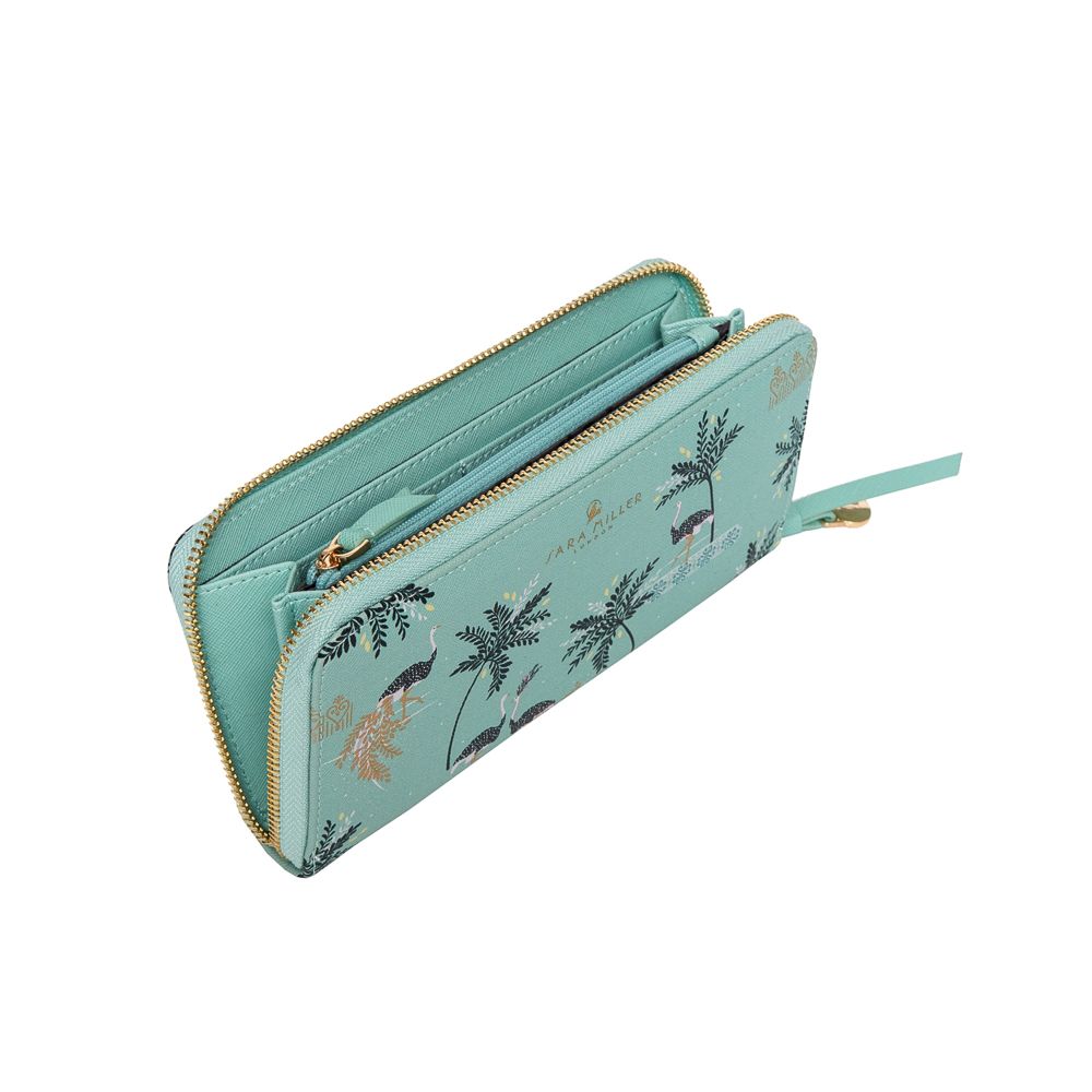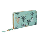 Monedero grande con cremallera que añade un toque de lujo a tu día a día. Sus compartimentos internos esenciales mantendrán tus tarjetas, monedas y billetes organizados y seguros en un solo lugar. El distintivo estampado combina sofisticación y estilo, con el lujo añadido de detalles decorativos en lámina dorada.