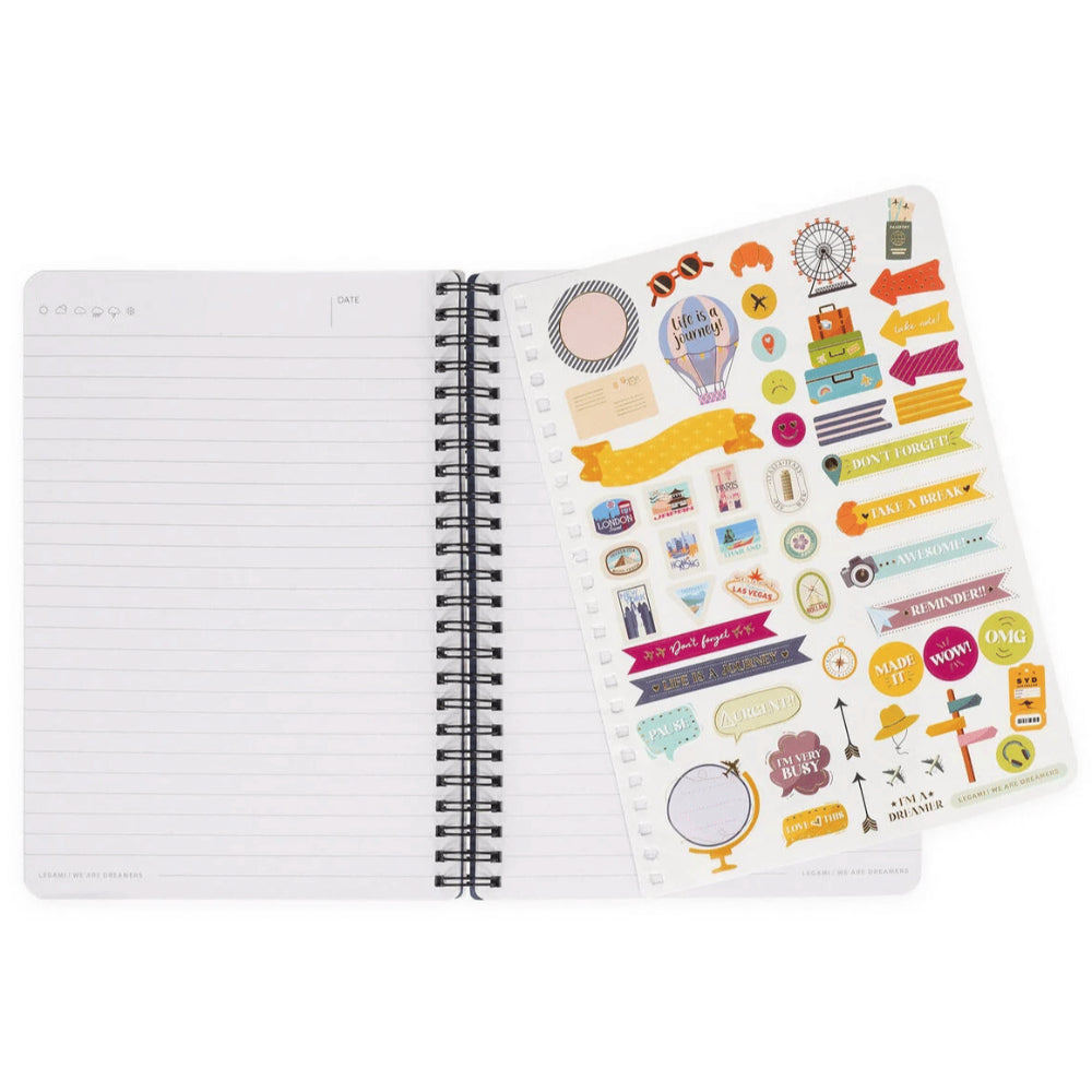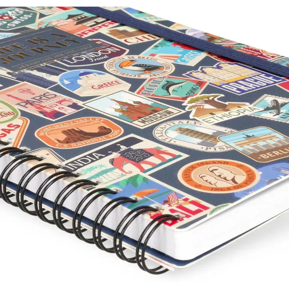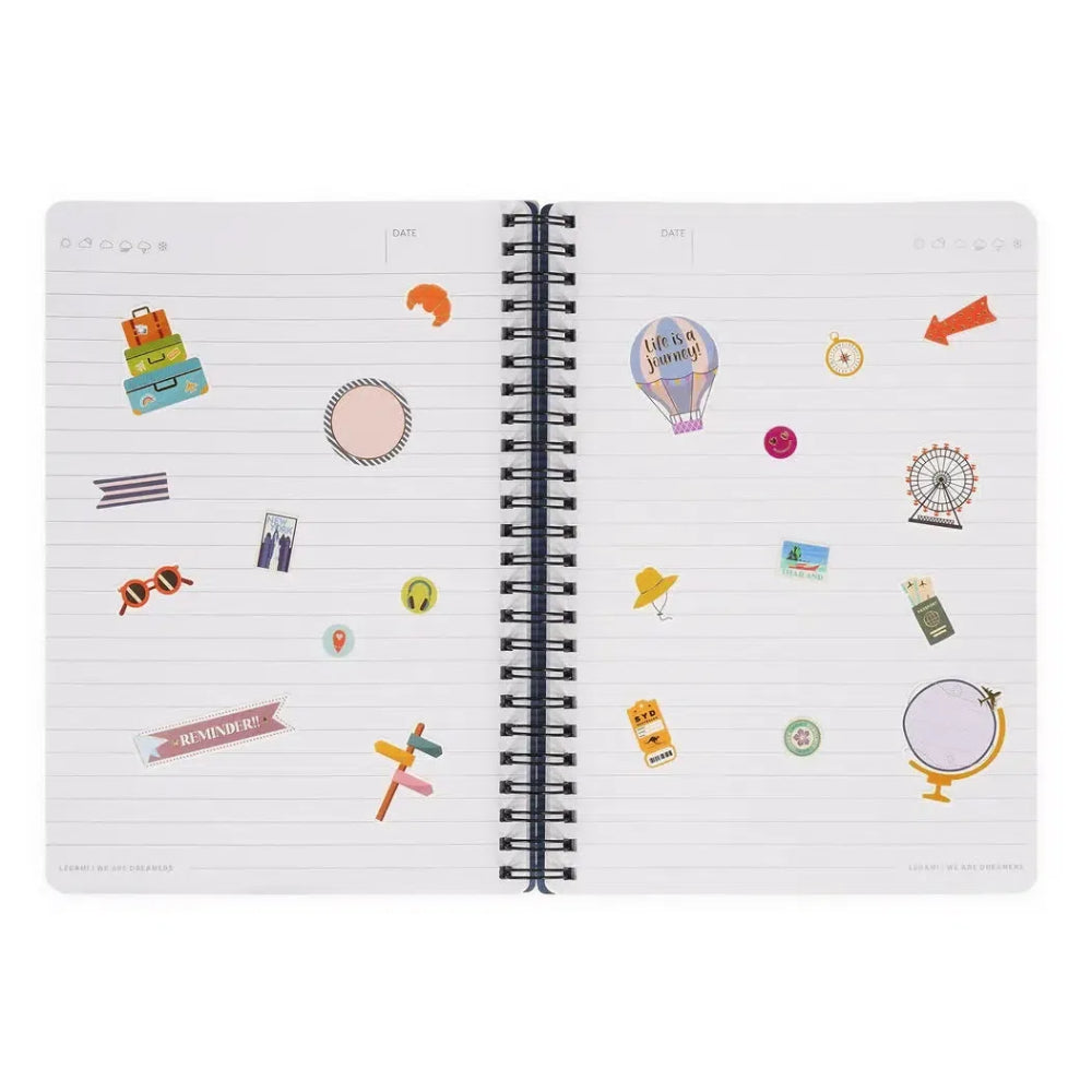 Si te gusta, ¡ponle un anillo! El Cuaderno Grande Travel Stickers de Legami es tan especial que su encuadernación de anillas recorre todo el lomo. Inspirado en el espíritu de los viajes, es perfecto para anotar ideas, planes y recuerdos mientras organizas tu día a día. Sus páginas invitan a escribir, planificar y decorar, especialmente con la hoja de stickers incluida. Un cuaderno práctico y lleno de inspiración para acompañarte en cada nueva aventura.