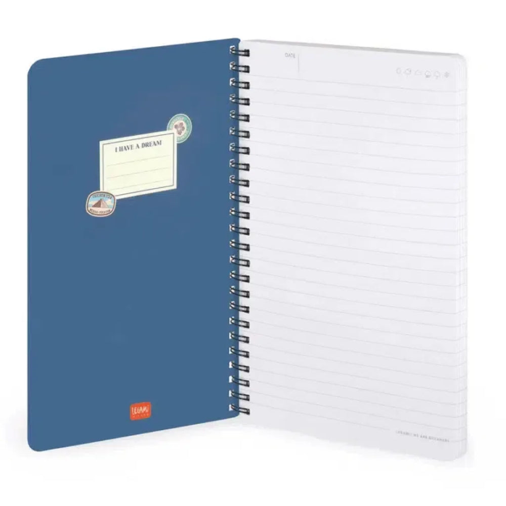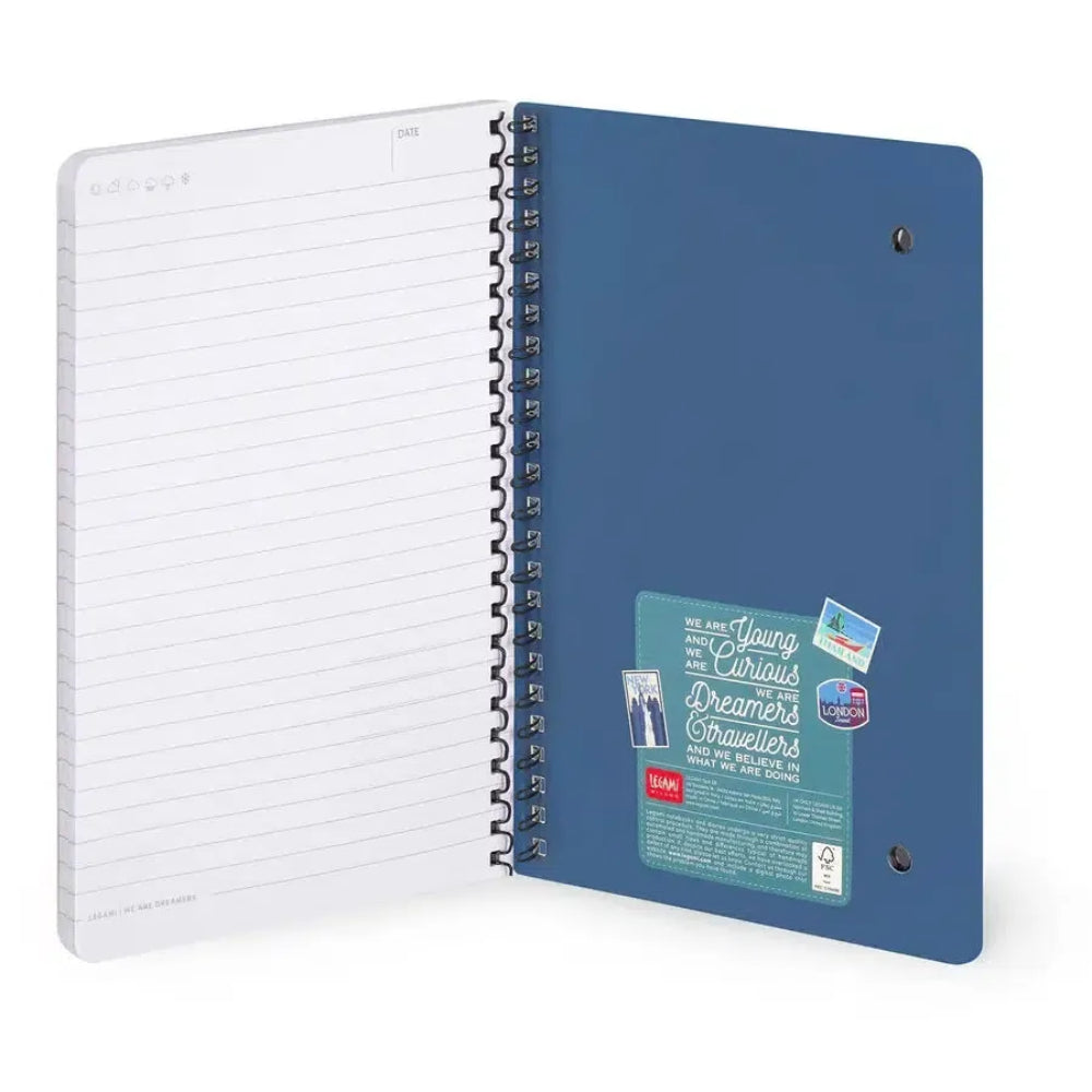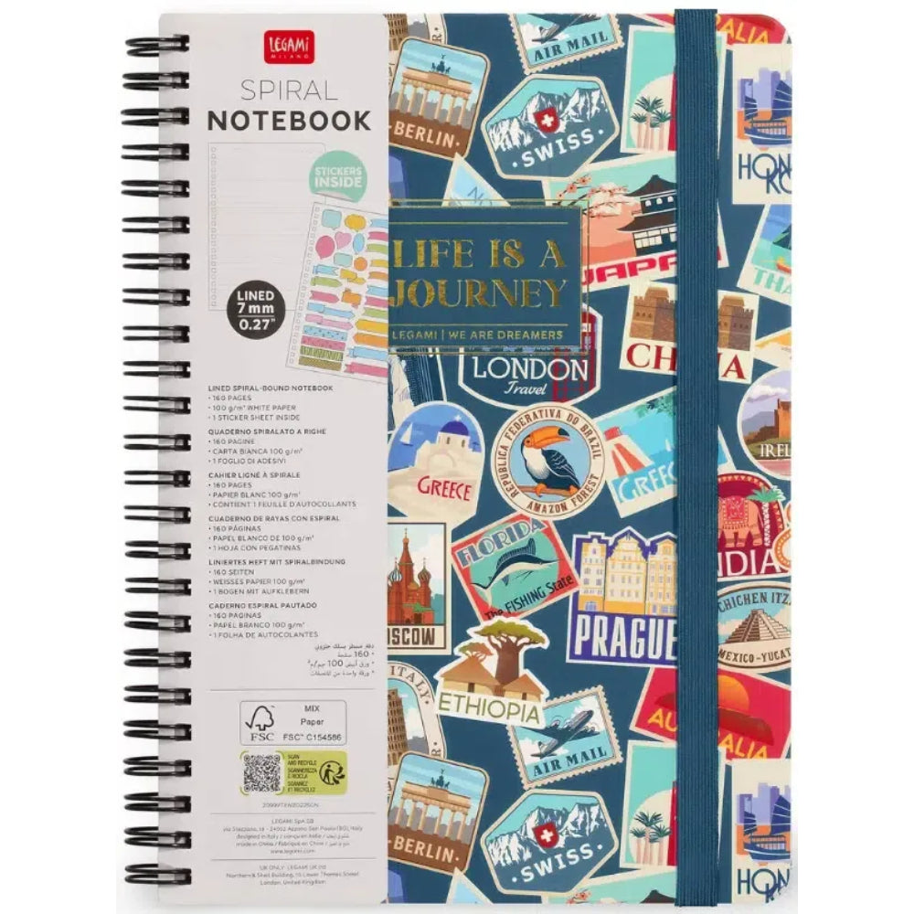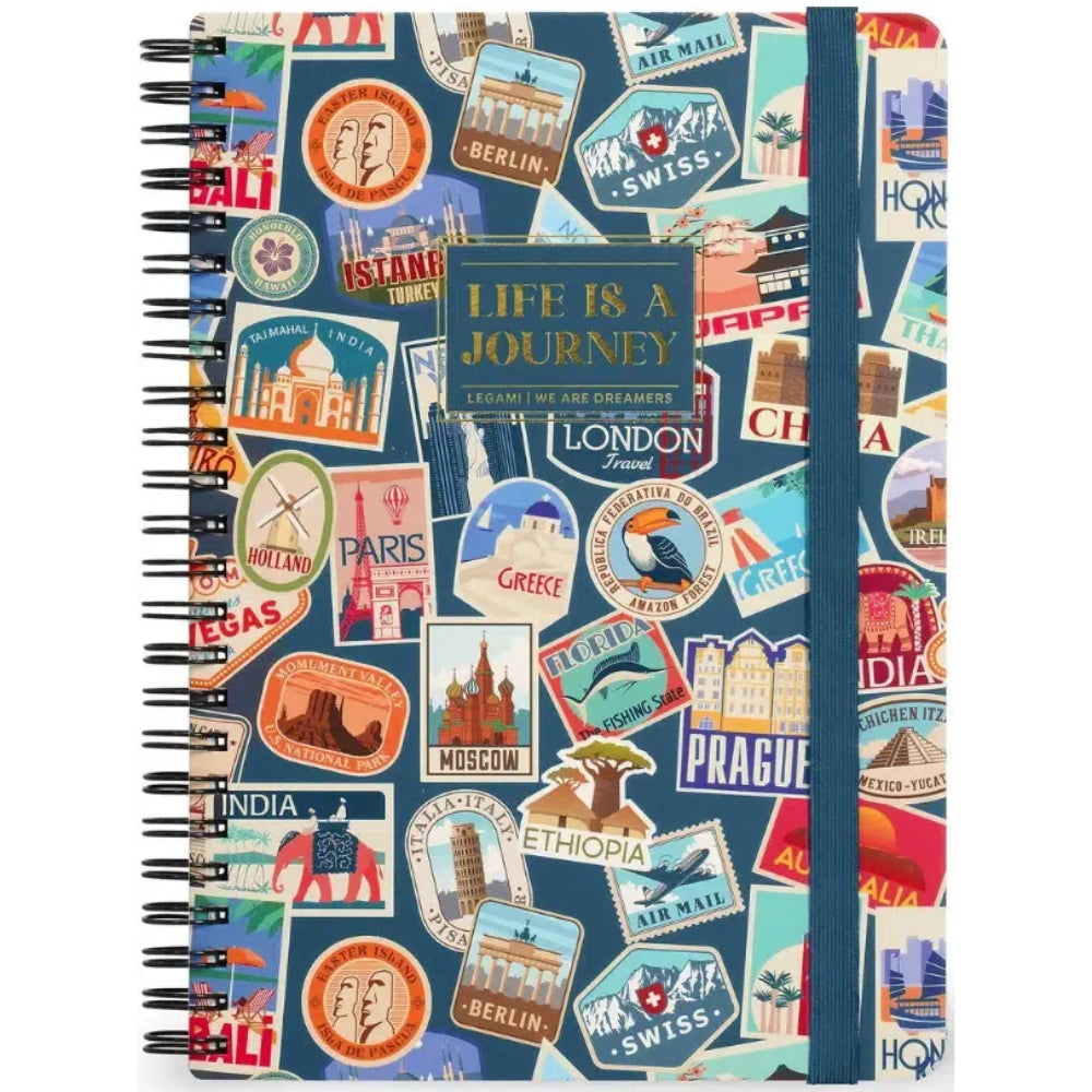 Si te gusta, ¡ponle un anillo! El Cuaderno Grande Travel Stickers de Legami es tan especial que su encuadernación de anillas recorre todo el lomo. Inspirado en el espíritu de los viajes, es perfecto para anotar ideas, planes y recuerdos mientras organizas tu día a día. Sus páginas invitan a escribir, planificar y decorar, especialmente con la hoja de stickers incluida. Un cuaderno práctico y lleno de inspiración para acompañarte en cada nueva aventura.