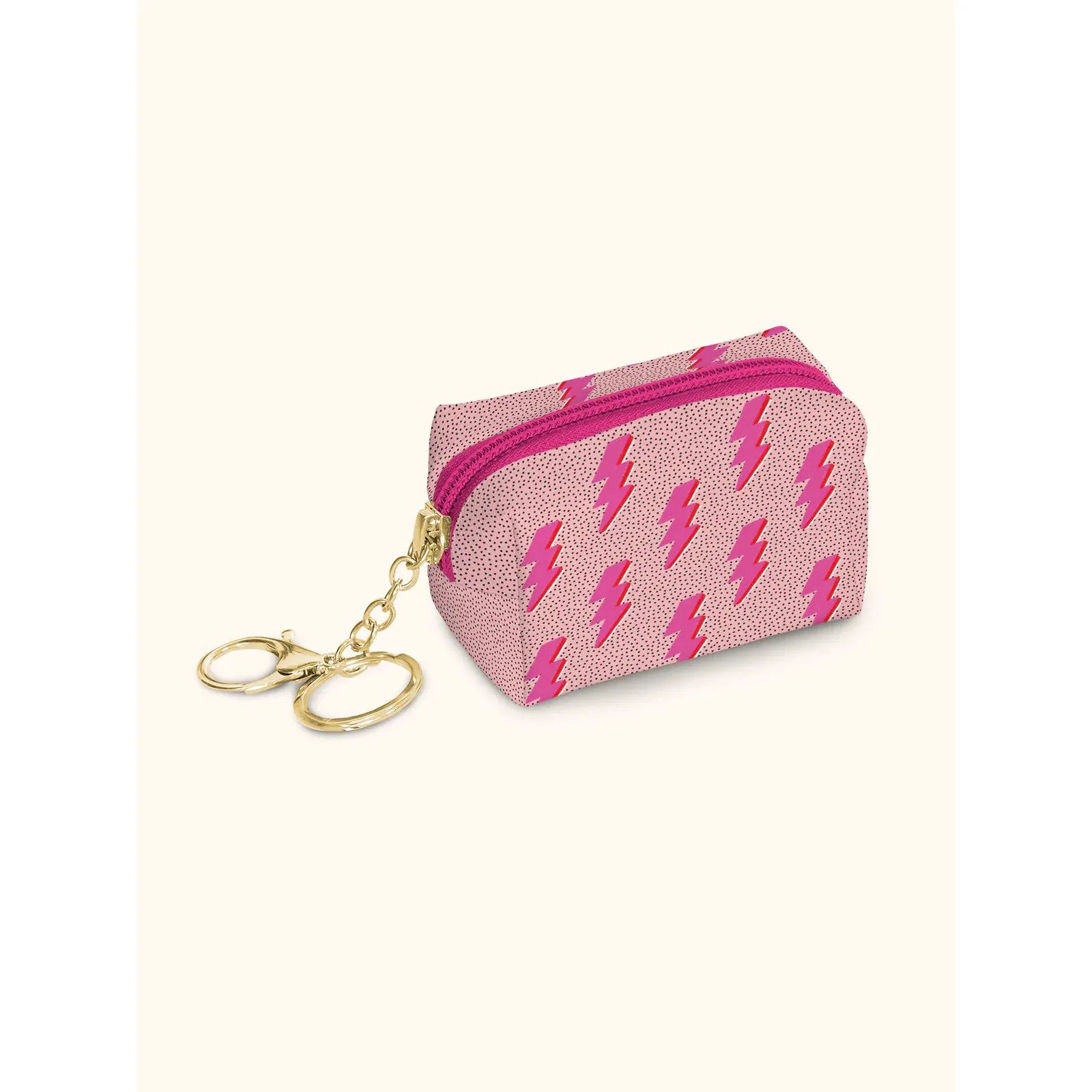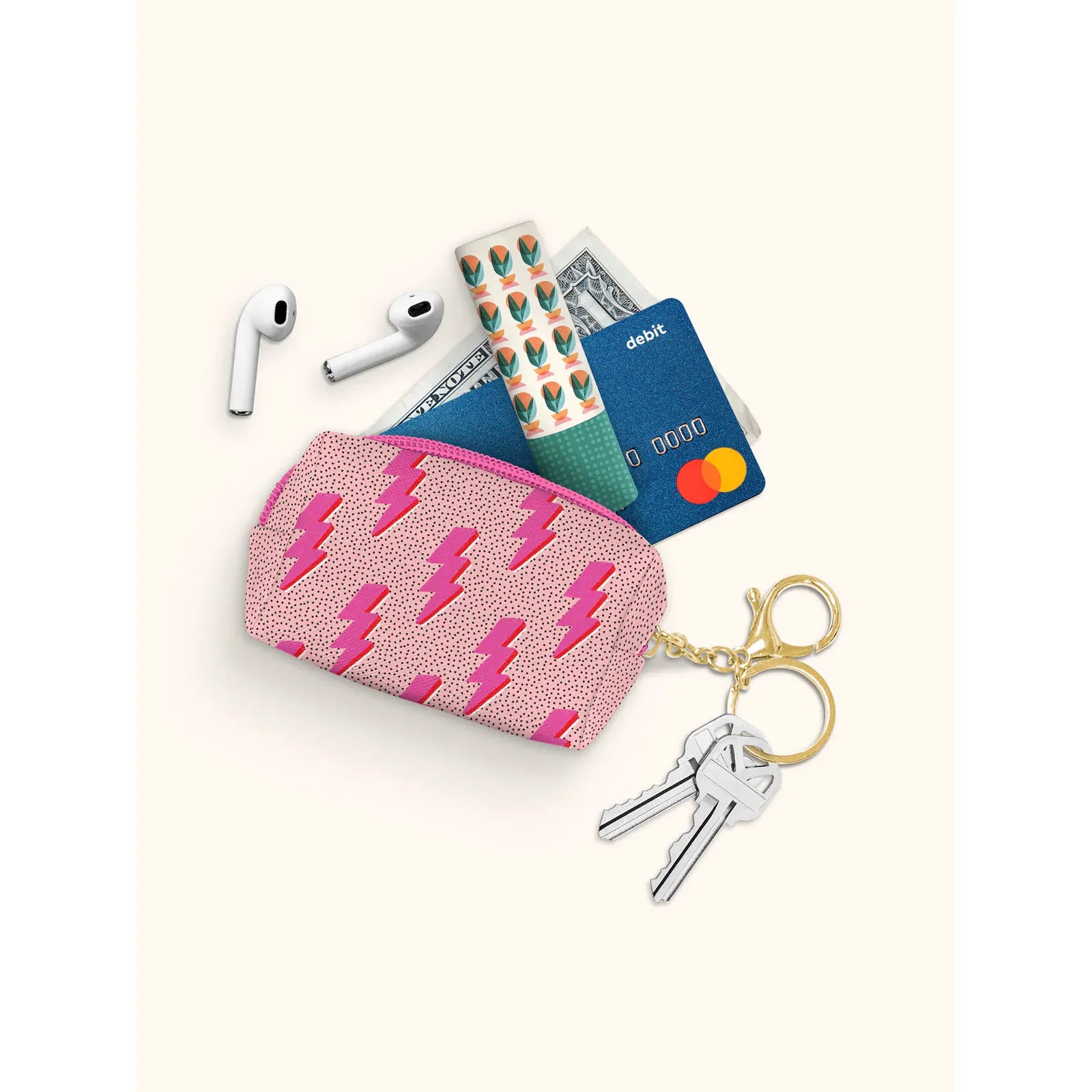 Este práctico mini estuche de Studio Oh! proporciona una forma segura y elegante de llevar artículos esenciales junto a tus llaves. El material con textura de lona resistente al agua e interiores forrados hace que sea duradero y fácil de limpiar. No te dejes engañar por su tamaño, ya que es lo suficientemente espaciosa para una variedad de artículos personales, como identificaciones, tarjetas, bálsamo labial, goma de mascar, dinero en efectivo, monedas, audífonos, y más. El cierre incluye un llavero y un broche de pinza, por lo que es fácil de sujetar a un bolso, mochila o cinturón.