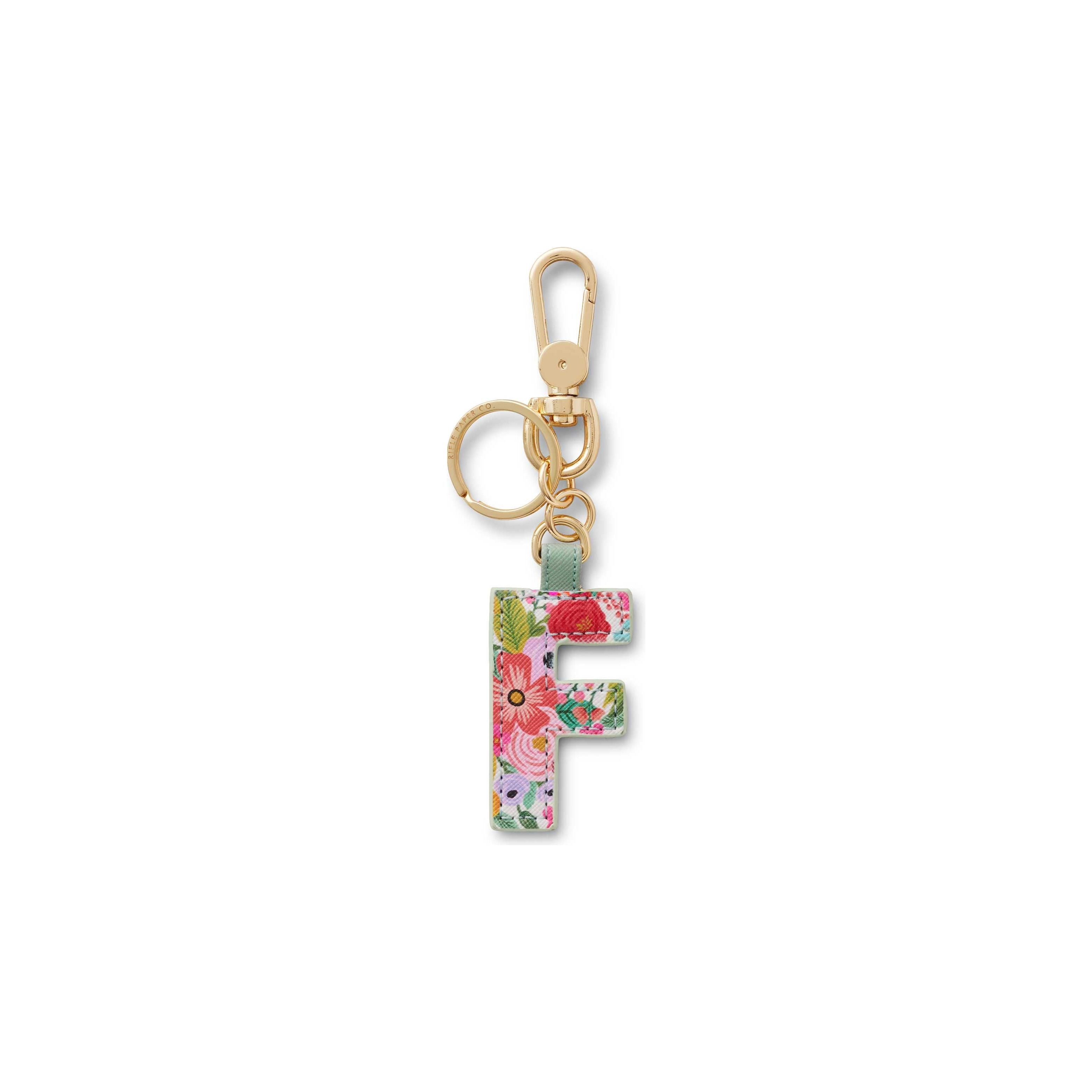 Nuestros llaveros con monograma presentan tu inicial en nuestro estampado floral favorito con un llavero y un clip de latón, perfectos para sujetarlos a tu bolso o mochila.