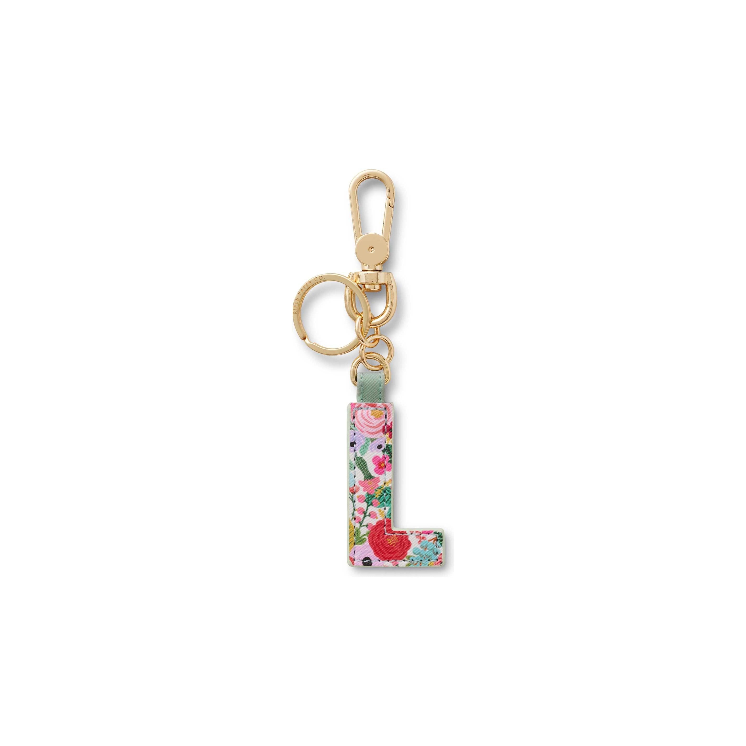 Nuestros llaveros con monograma presentan tu inicial en nuestro estampado floral favorito con un llavero y un clip de latón, perfectos para sujetarlos a tu bolso o mochila.