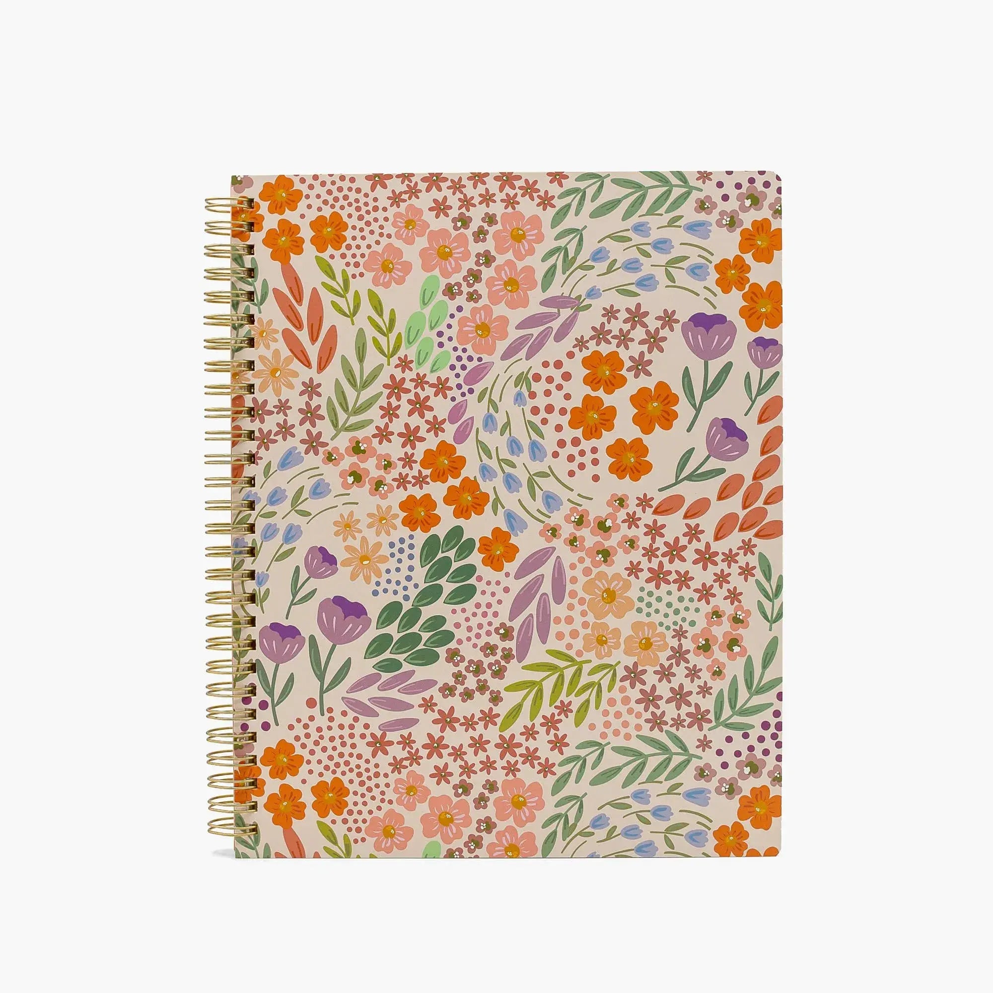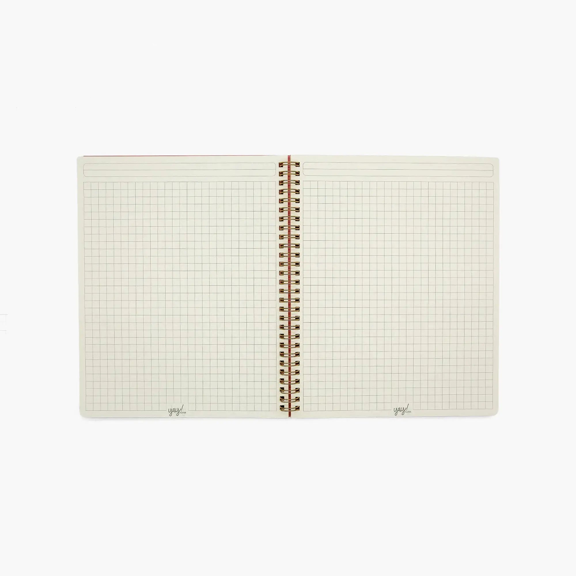 Cuaderno de espiral grande con tapa dura, pensado para escribir y organizar con comodidad y estilo. Su formato amplio, las esquinas redondeadas y la doble espiral en tono oro envejecido lo convierten en una pieza funcional y elegante para el día a día, tanto en estudio como en trabajo.