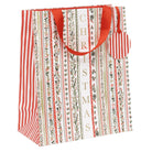Ideal para envolver tus regalos navideños grandes, esta bolsa combina el encanto clásico de las rayas rojas, doradas y blancas con delicados toques dorados y motivos de muérdagos festivos. Su diseño alegre y tradicional, junto con el mensaje a"Christmas" acabado en foil y sus asas rojas, añade un aire cálido y elegante a cualquier regalo.