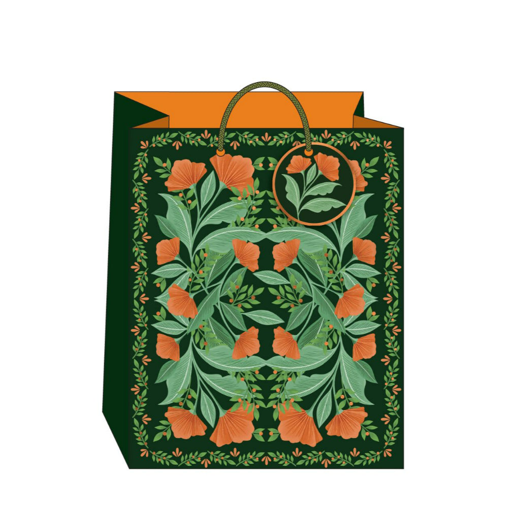 Elegante bolsa de regalo con diseño Nouveau Poppies, perfecta para presentar tus obsequios especiales con estilo. Su tamaño grande ofrece amplio espacio para regalos voluminosos, mientras que su hermoso patrón floral añade un toque de distinción y calidez a cualquier ocasión.