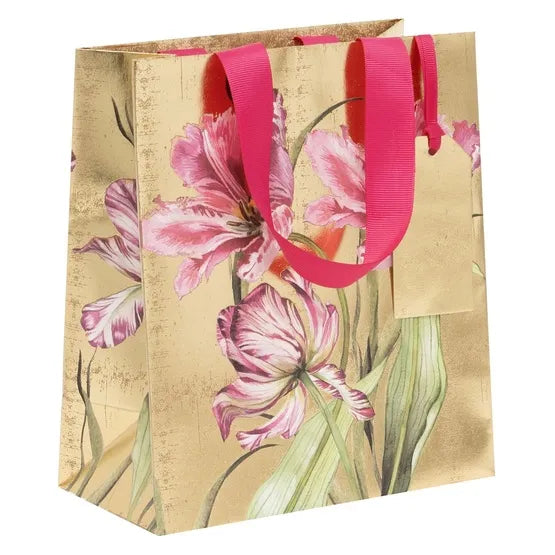 Destaca tus regalos con esta bolsa, que combina un elegante fondo dorado con brillantes tulipanes. Su diseño sofisticado aporta un toque de lujo y delicadeza, ideal para envolver presentes con estilo y personalidad. Perfecta para hacer que cada regalo sea inolvidable y especial.