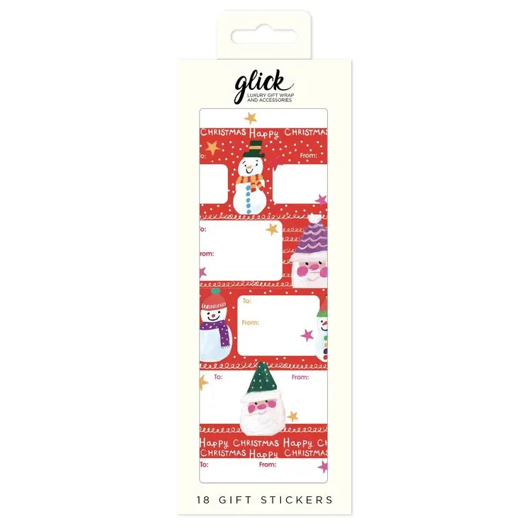 Estas etiquetas adhesivas son una manera rápida y muy cute de personalizar tus regalos de Navidad. Vienen con ilustraciones festivas —muñecos de nieve, Santa y detalles coloridos— y espacios para escribir “To/From” sin complicarte. El set incluye 18 stickers, listos para pegar directamente en tus paquetes.
