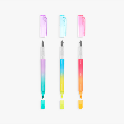 Los dúos de escritores son un conjunto de plumas estilográficas de tinta de tres colores que escriben en un hermoso azul, rosa y morado. Cuando voltea el bolígrafo hacia el otro lado, los resaltadores con punta de cincel tienen colores pastel complementarios de amarillo, verde azulado y naranja. Estos combos de rotuladores son perfectos para planificadores, llevar un diario o hacer su lista de compras. Y todos los recambios de la pluma estilográfica OOLY se ajustan cuando es necesario. Debe tener un rotulador resaltador que sea una oficina definida.