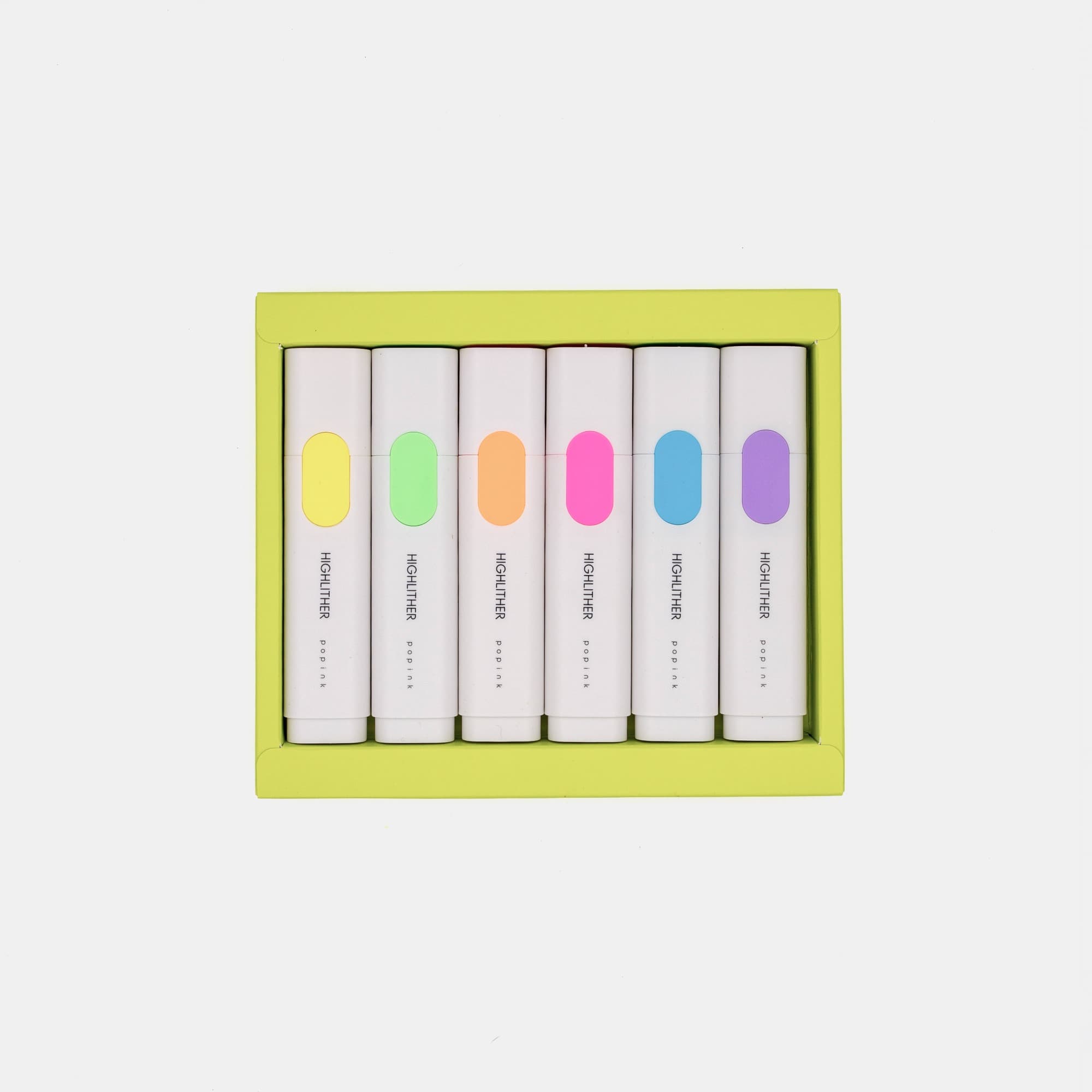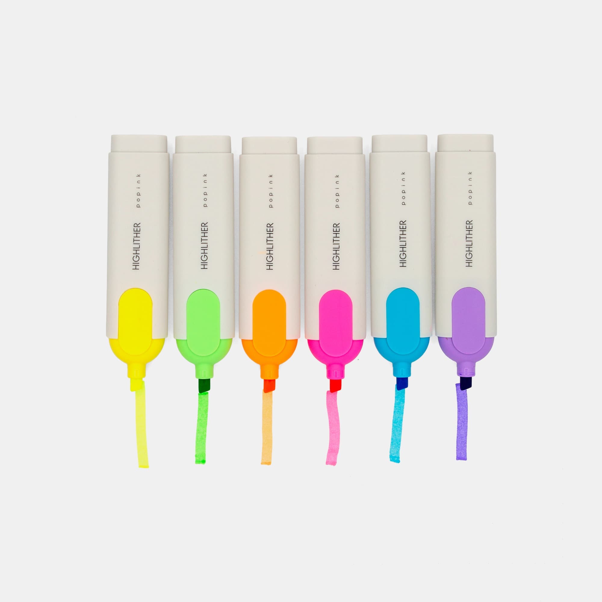 Ilumina tus apuntes con el set de 6 destacadores POPINK en colores neón vibrantes. Diseñados con un cuerpo elíptico cómodo de sostener, estos destacadores combinan estilo y funcionalidad para acompañarte en clases, oficina o planificación diaria. Su punta biselada permite variar el trazo entre líneas finas y marcados más amplios, adaptándose a cada necesidad. Colores intensos, diseño moderno y toda la energía POPINK para que tus ideas resalten siempre.